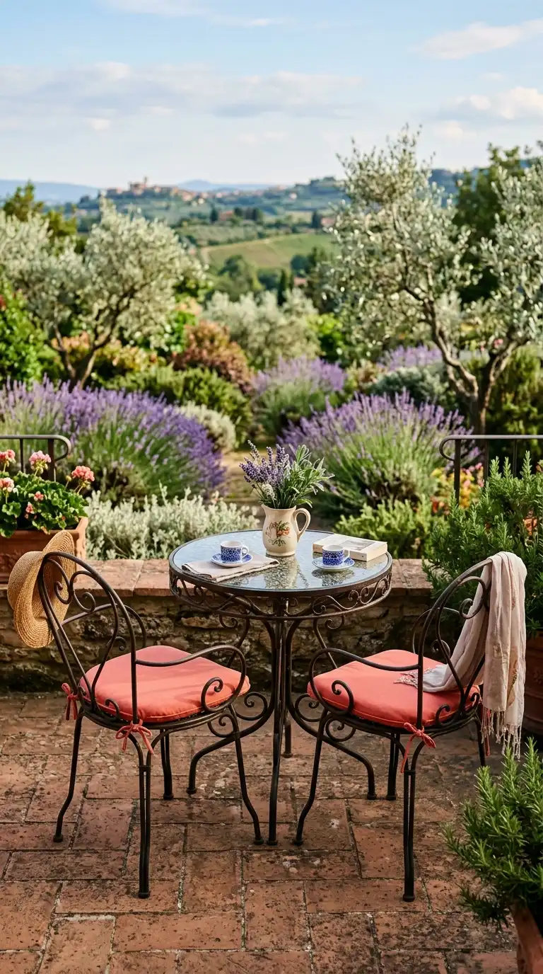 Wrought iron furniture is a Mediterranean classic. Choose a dining table, chairs, bench, or bistro set with intricate scrollwork. The black or dark bronze metal contrasts beautifully with warm terracotta and stone. Add cushions in bright Mediterranean colors—coral, turquoise, ochre, or cobalt blue—for comfort and a pop of color.