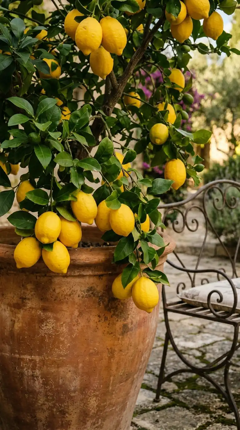 Plant lemon, orange, or lime trees in large terracotta pots. The fragrant blossoms and bright fruit are quintessentially Mediterranean. Citrus trees thrive in pots and can be moved indoors during cold winters. Place them near seating areas to enjoy the scent. The glossy green leaves and yellow or orange fruit add color and fragrance year-round.