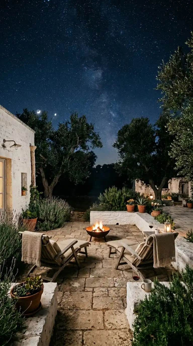 Create a simple terrace for evening stargazing, away from house lights. Use stone or gravel for the flooring, and add a few lounge chairs or a built-in bench. Keep the area uncluttered, with minimal plantings. The terrace should be open to the sky, offering an unobstructed view of the stars. Add a small fire bowl for warmth on cool nights.