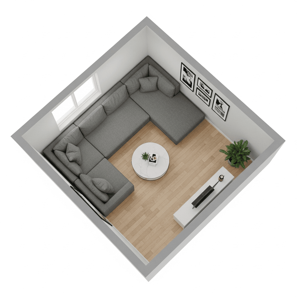Corner Optimization: Tucking sectionals into corners maximizes seating while keeping room centers open for circulation and visual spaciousness.
