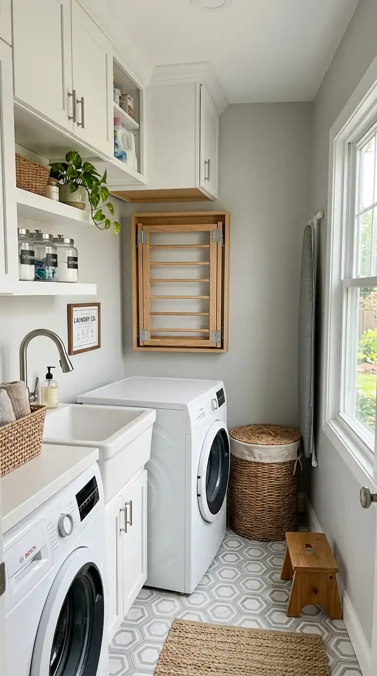 A small laundry room doesn’t have to feel cramped or inefficient. With clever storage solutions, space-saving appliances, and thoughtful design, even the tiniest space can be highly functional. Stack your washer and dryer, use vertical space with shelves and pull-out cabinets, install folding drying racks and ironing boards, and keep counters clear with smart storage. Bright paint and good lighting make the room feel larger and more inviting. Whether you have a closet, a corner, or a narrow room, these small laundry room ideas will help you make the most of every square inch.