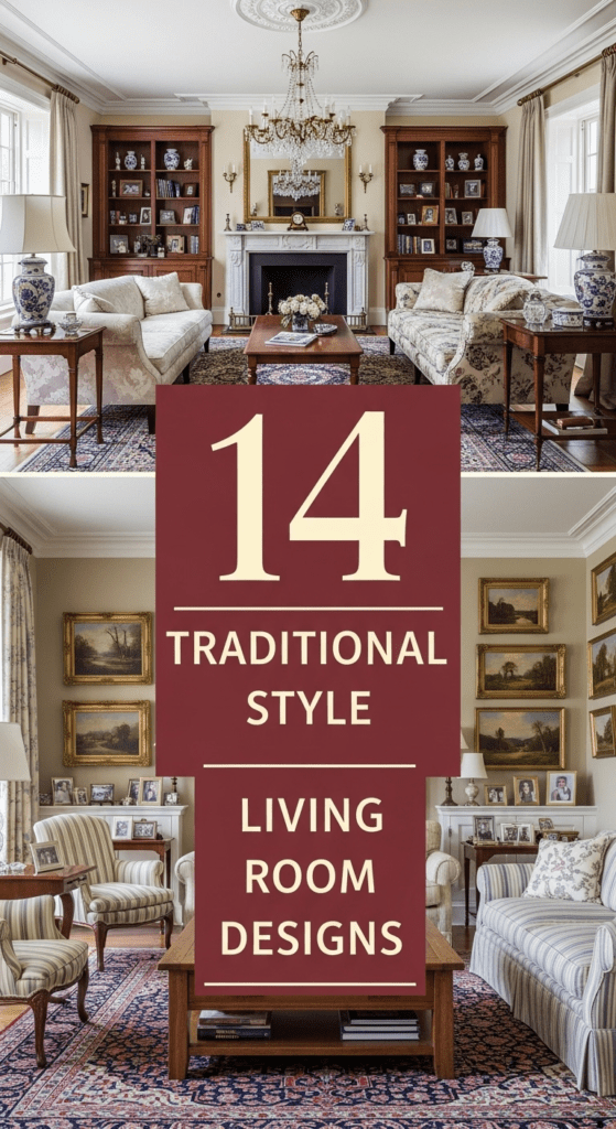 Traditional style living room designs are defined by their sense of history, symmetry, and enduring comfort. Unlike minimalist trends that come and go, traditional decor leans into the “more is more” philosophy of craftsmanship—think ornate crown moldings, rich wood finishes, and luxurious textiles like silk and velvet. This aesthetic is designed to feel established and welcoming, prioritizing formal layouts that facilitate conversation. Here are 14 designs that celebrate the beauty of classic interior design.