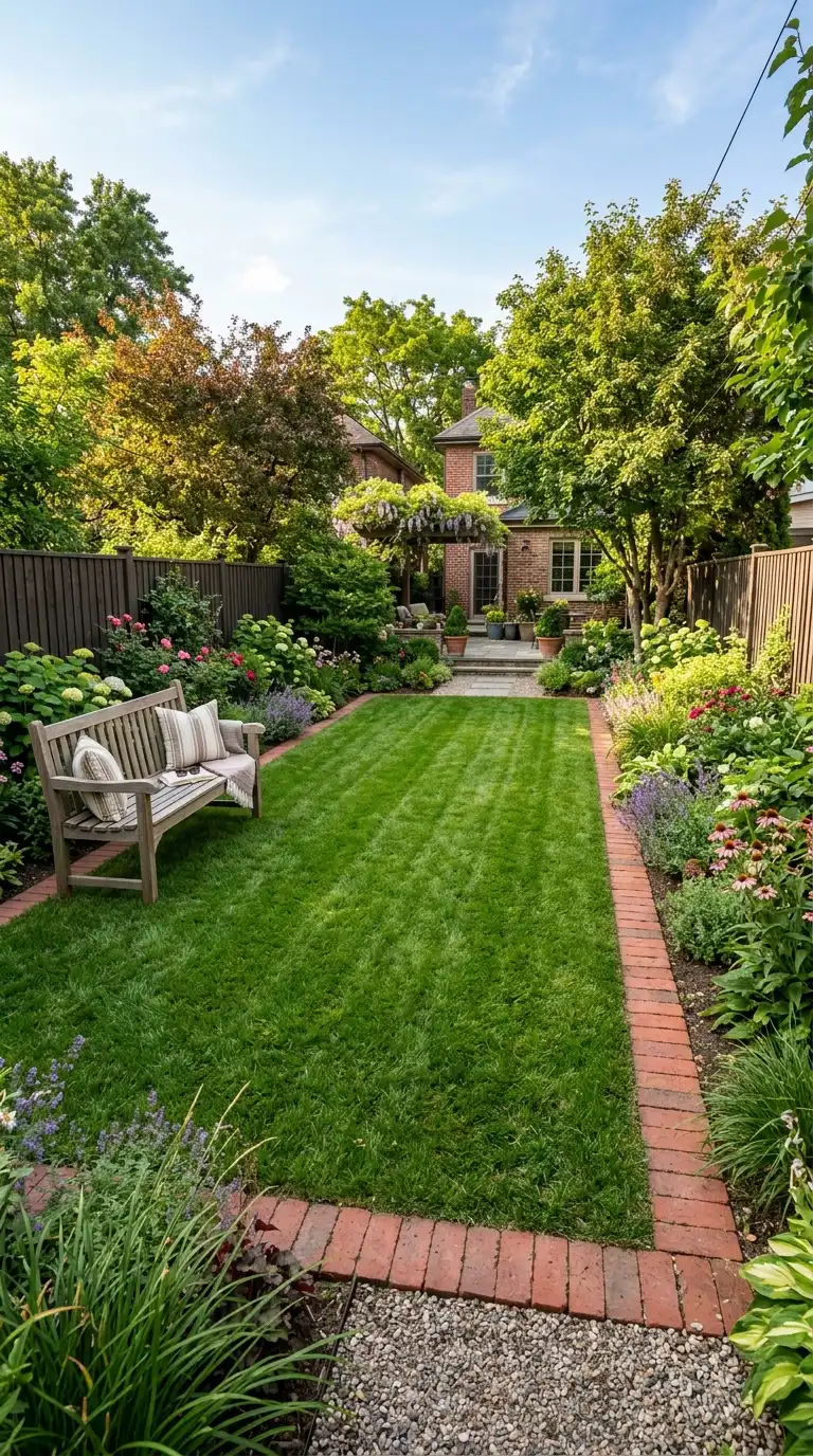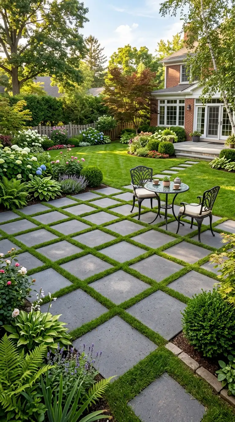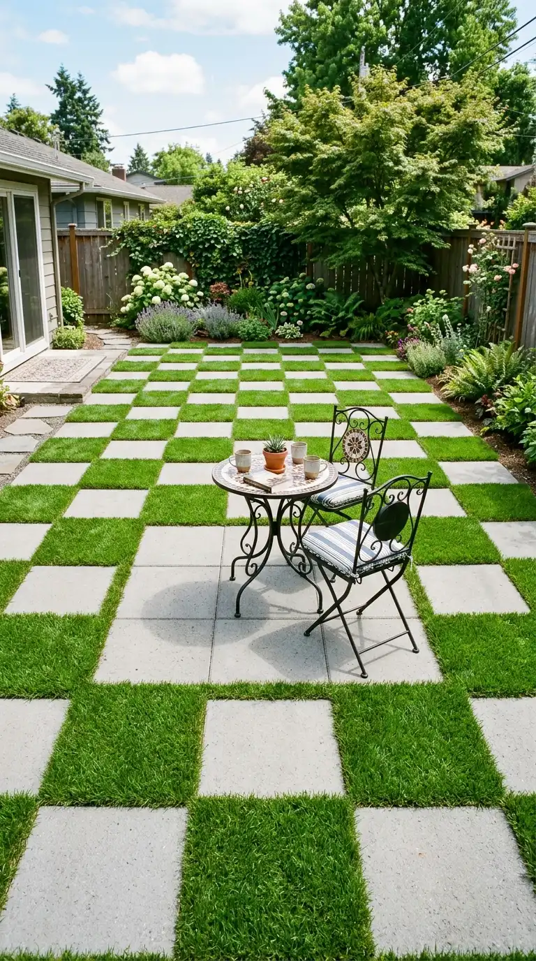 Create a wide walkway with pavers set into the turf with gaps between them. The turf grows between the pavers, creating a soft, natural path. Use large, irregular stones for a rustic look, or rectangular pavers for a modern feel. This design is perfect for garden paths or for connecting different areas of your yard.