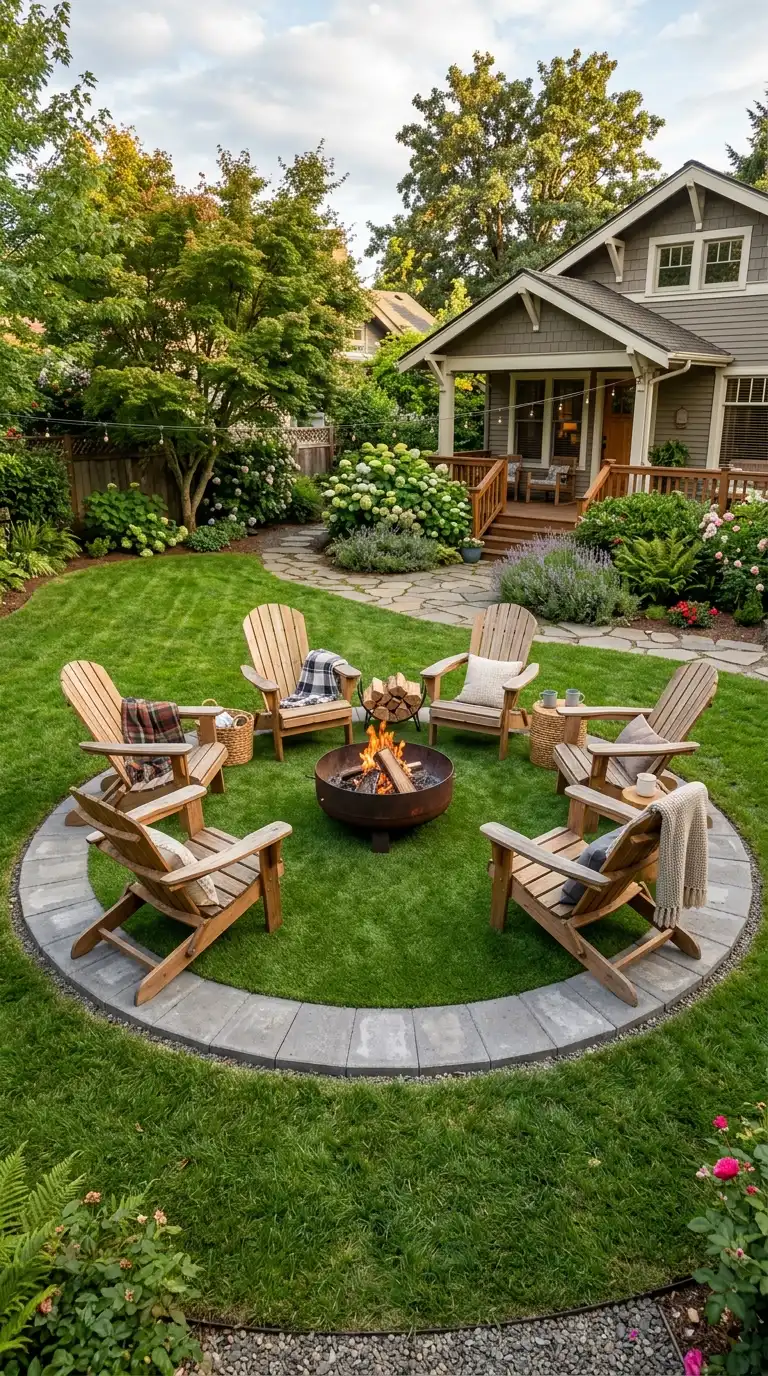 Create a circular turf area surrounded by a ring of pavers. The turf can serve as a play area, a spot for a fire pit, or a place for lounge chairs. The paver ring defines the space and provides a stable surface for walking or placing furniture. Use contrasting paver colors to make the circle stand out.