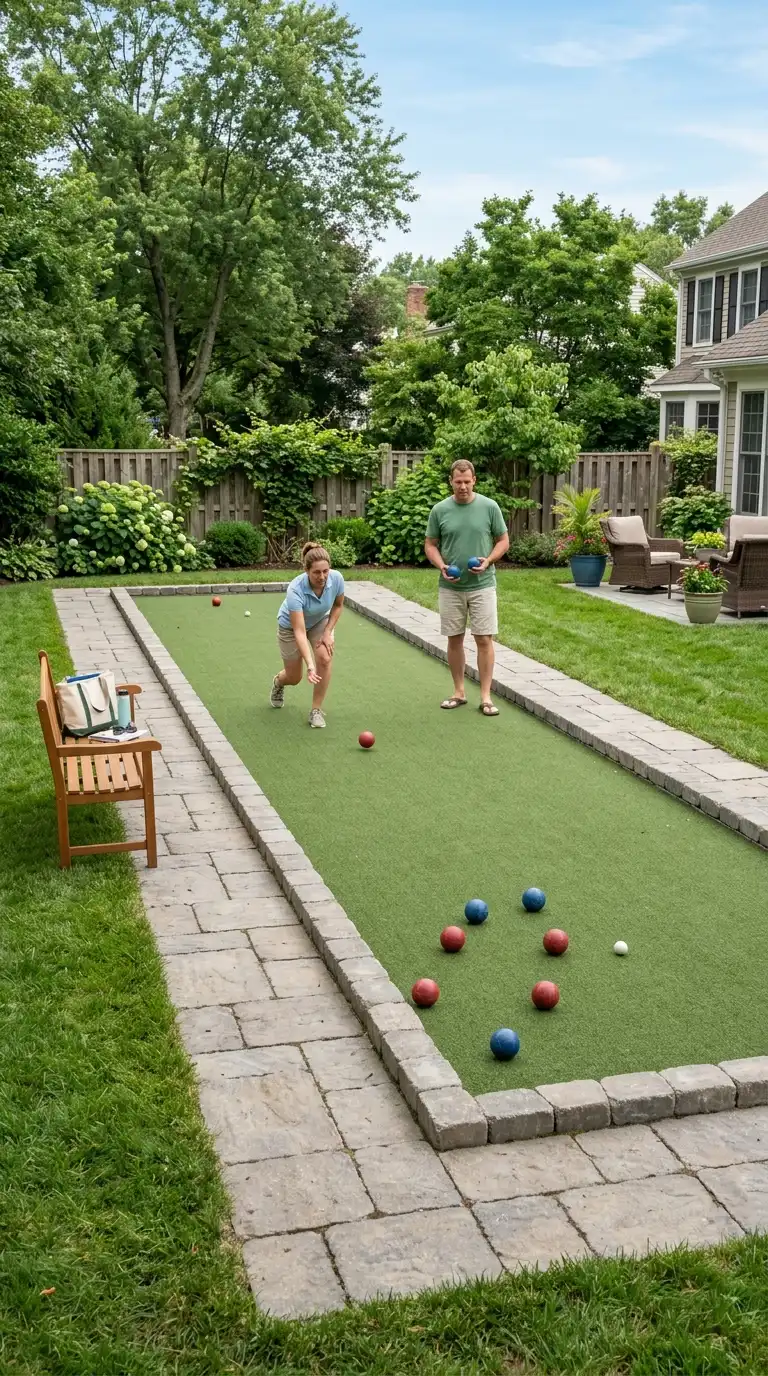 Build a bocce court in your backyard with a turf playing surface and a paver border. The turf provides a soft, true roll for the balls, and the paver border defines the court and provides a stable surface for players. Add a paver path around the court for easy access.