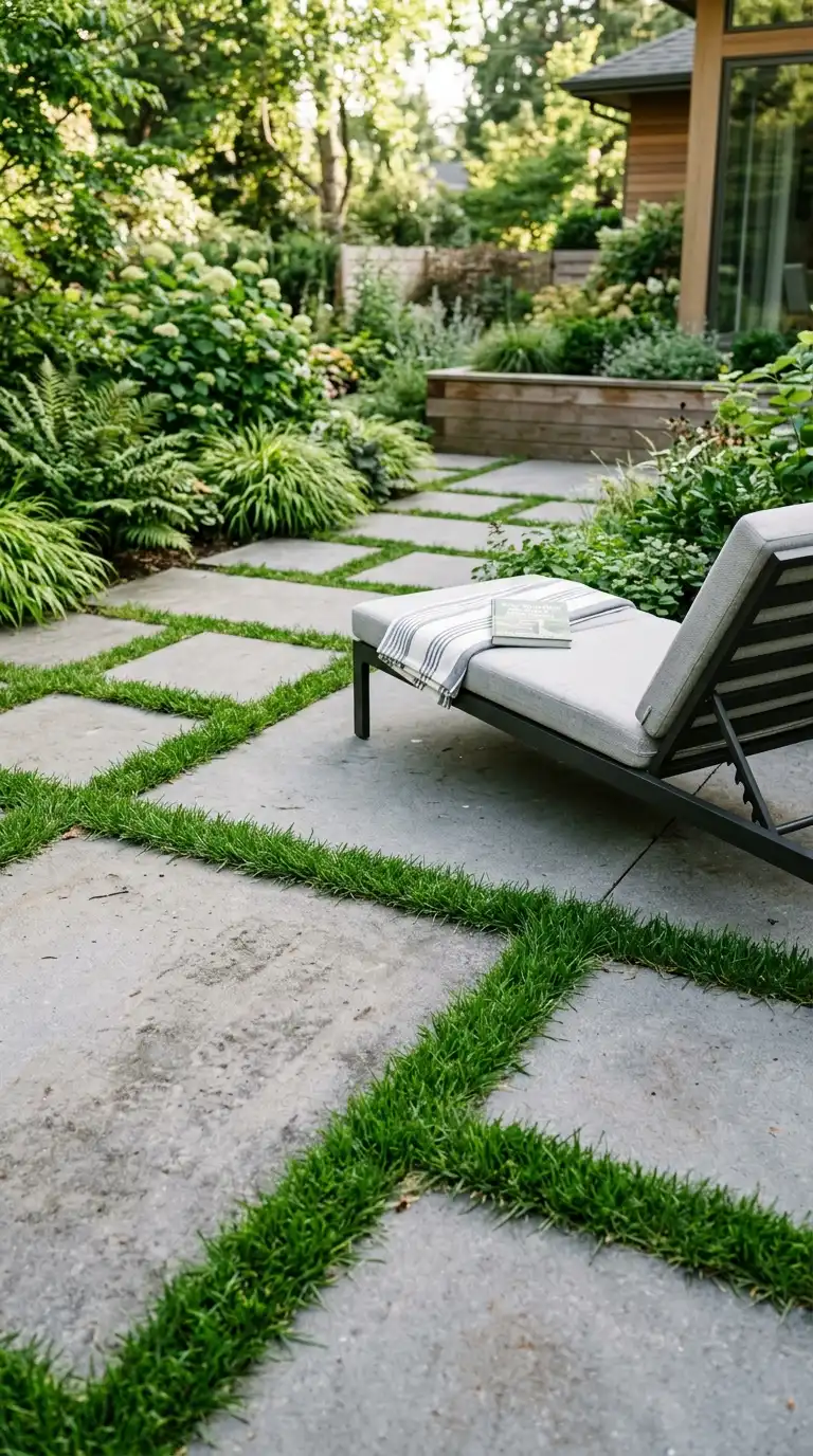 For a modern, open look, lay pavers with wide gaps filled with turf. The turf grows between the pavers, creating a soft, permeable surface. This design works well for patios, pool decks, or pathways. Use large-format pavers in a neutral color, and keep the turf well-maintained.