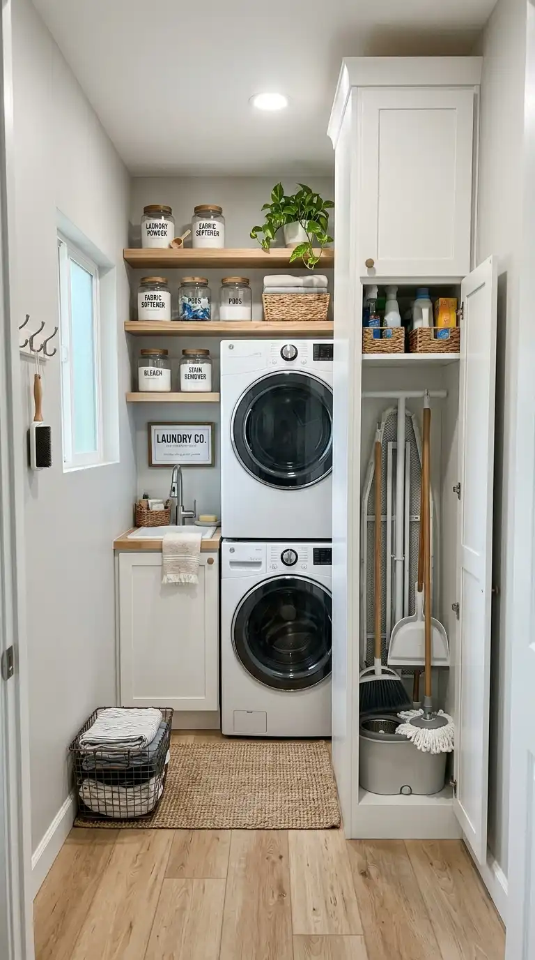 A very small laundry room presents unique challenges, but with creative thinking and smart design, even the tiniest space can be transformed into a highly functional and even pleasant workspace. Whether you have a closet-sized nook, a hallway alcove, or a corner of your bathroom, these ideas will help you maximize every square inch. From stacking appliances and pull-out drying racks to wall-mounted ironing boards and fold-down folding stations, here are fourteen very small laundry room ideas to inspire your next project.