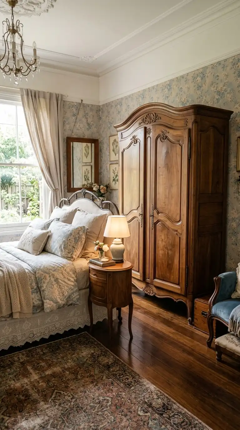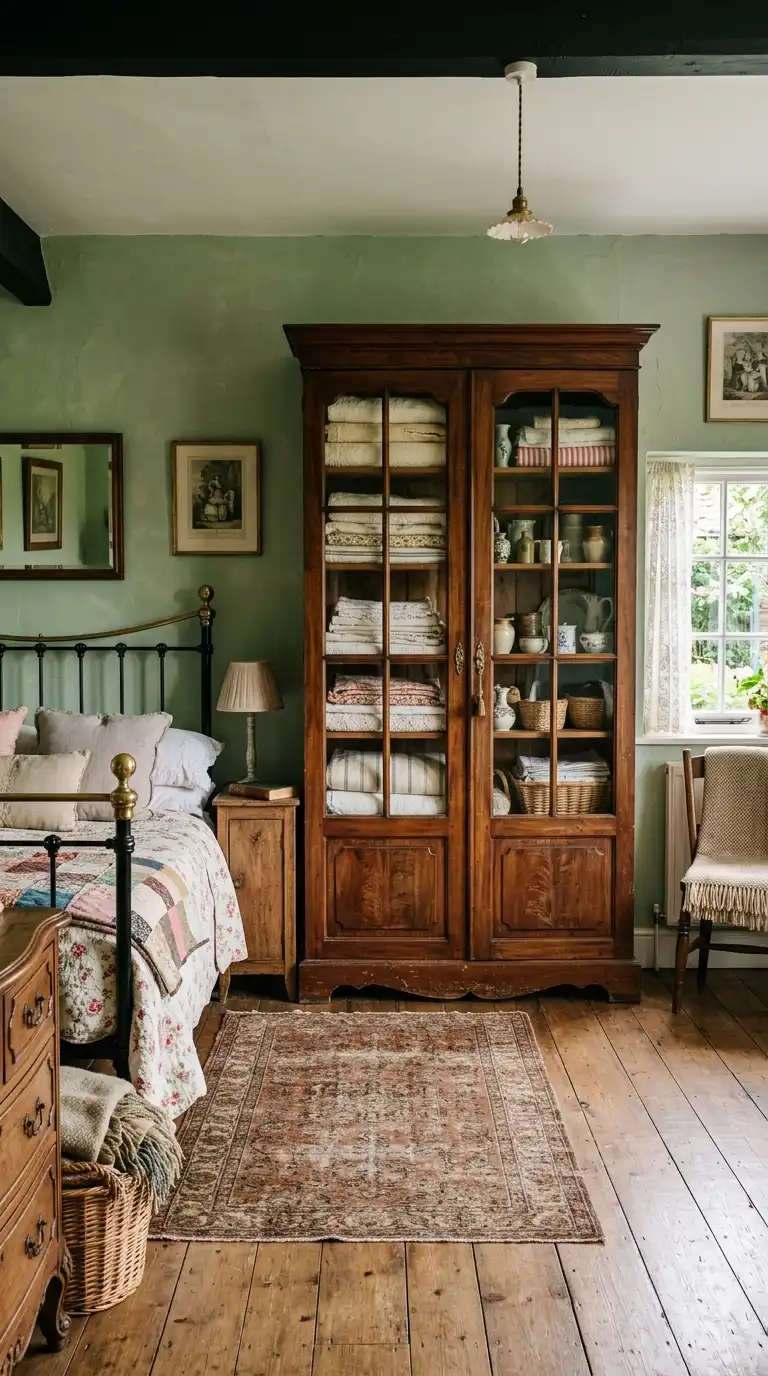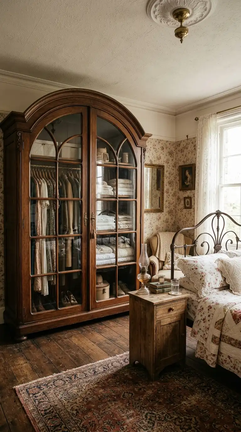 Combine different materials for a layered, vintage-inspired look. Use wood, glass, rattan, and metal in a single piece to add texture and visual interest. A wardrobe with wood doors, glass panels, and brass hardware feels rich and collected.