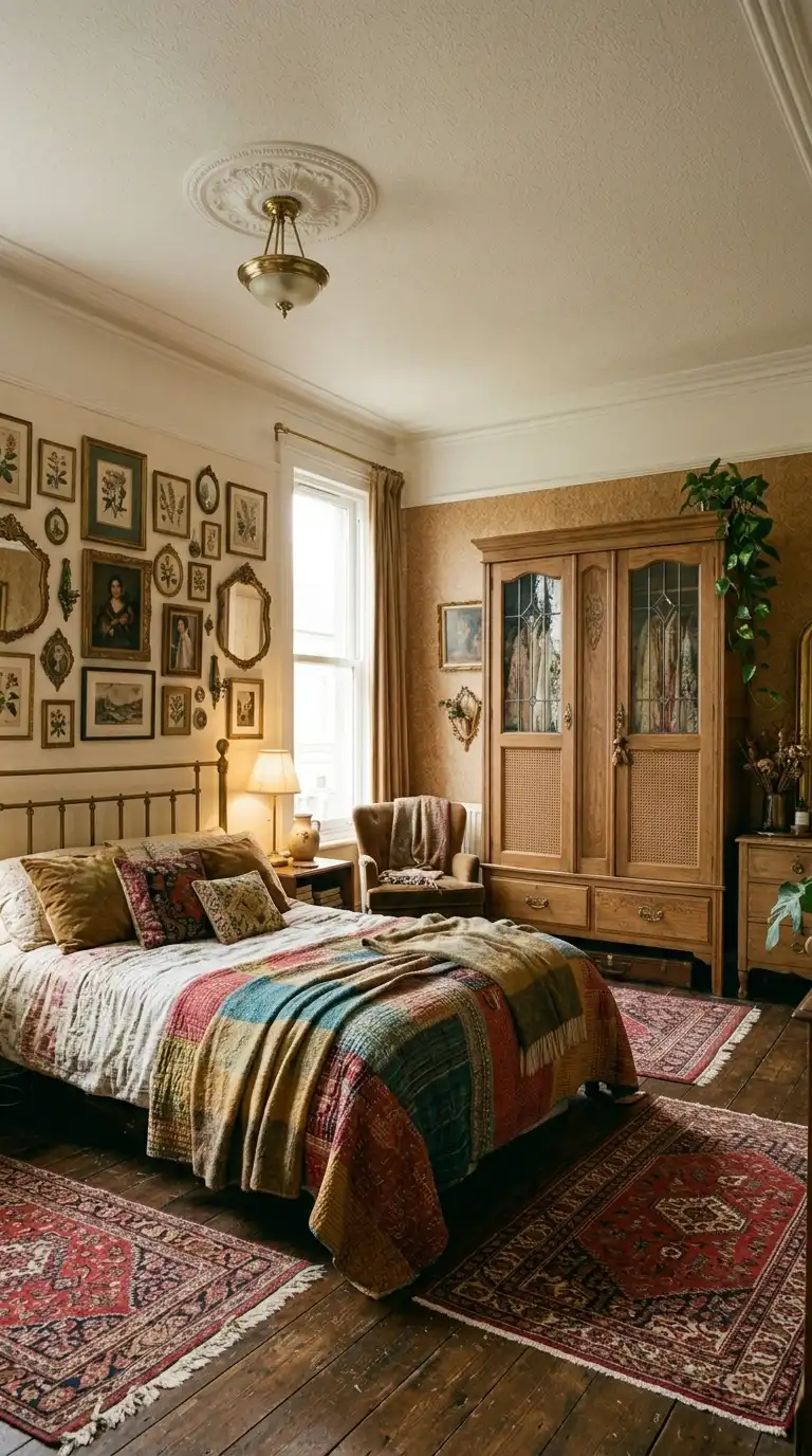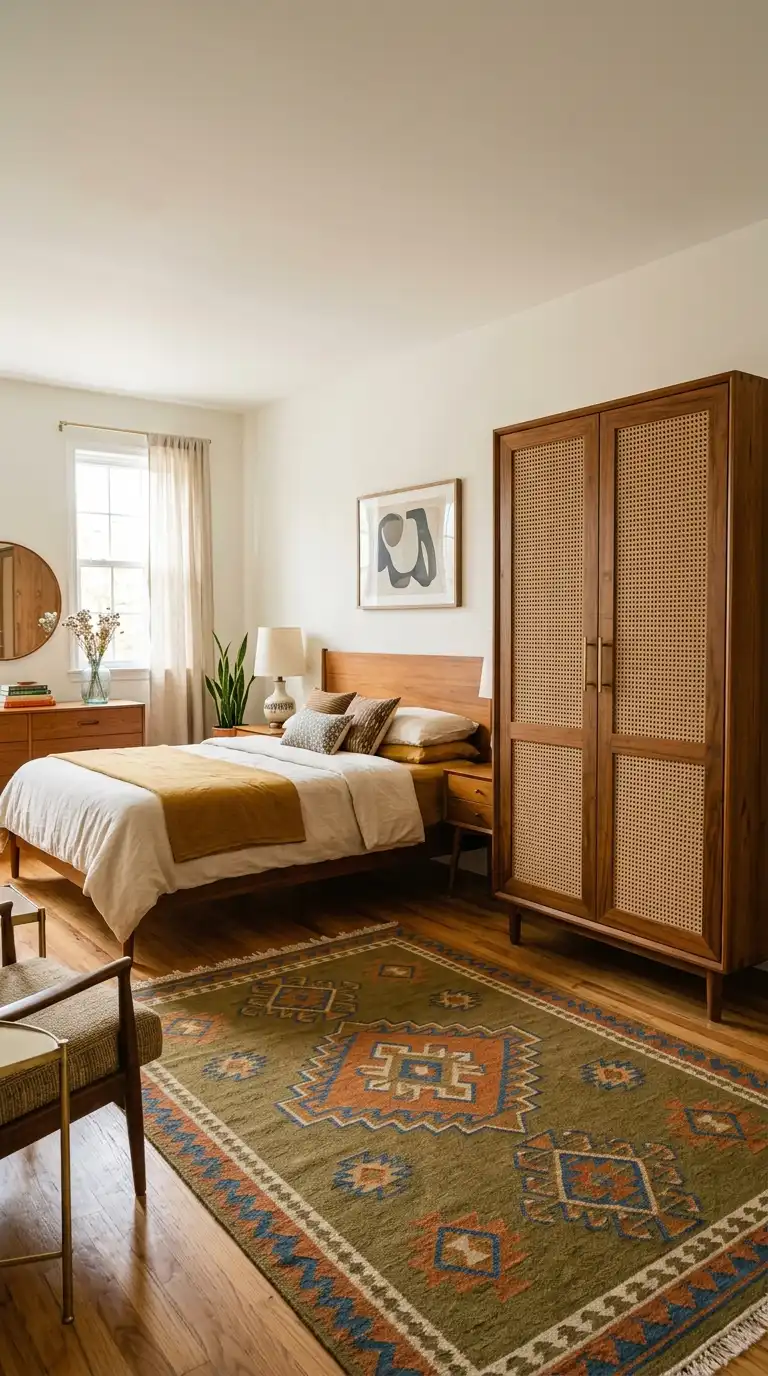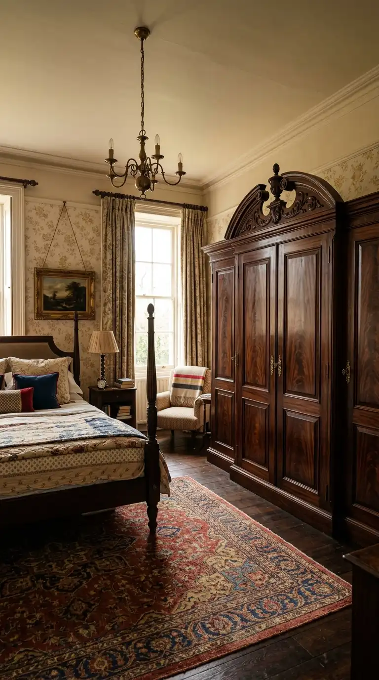 Combine different materials for a layered, vintage-inspired look. Use wood, glass, rattan, and metal in a single piece to add texture and visual interest. A wardrobe with wood doors, glass panels, and brass hardware feels rich and collected.