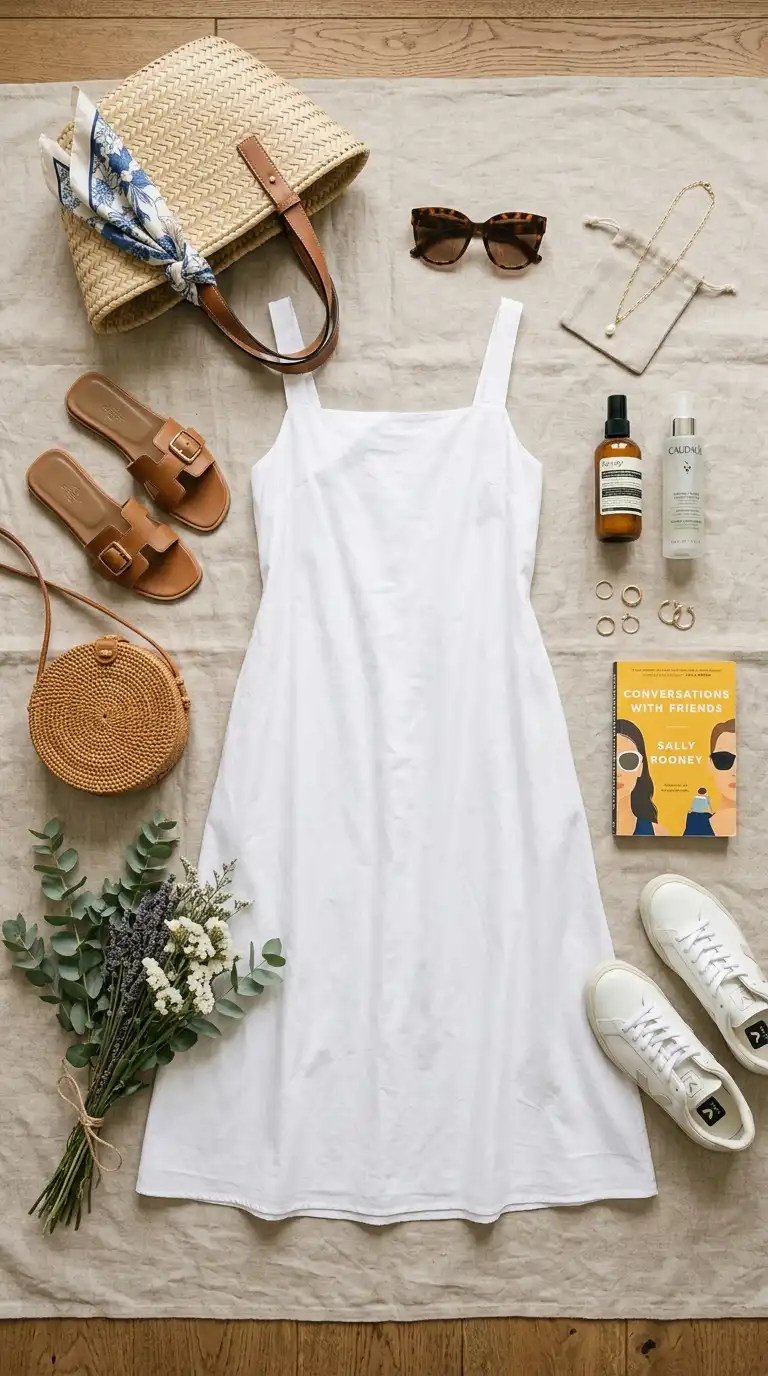 The little white dress is a summer essential that transitions beautifully into other seasons with layering. Choose a simple silhouette in a breathable fabric like cotton or linen. It can be worn alone for warm days or layered with a denim jacket or cardigan.