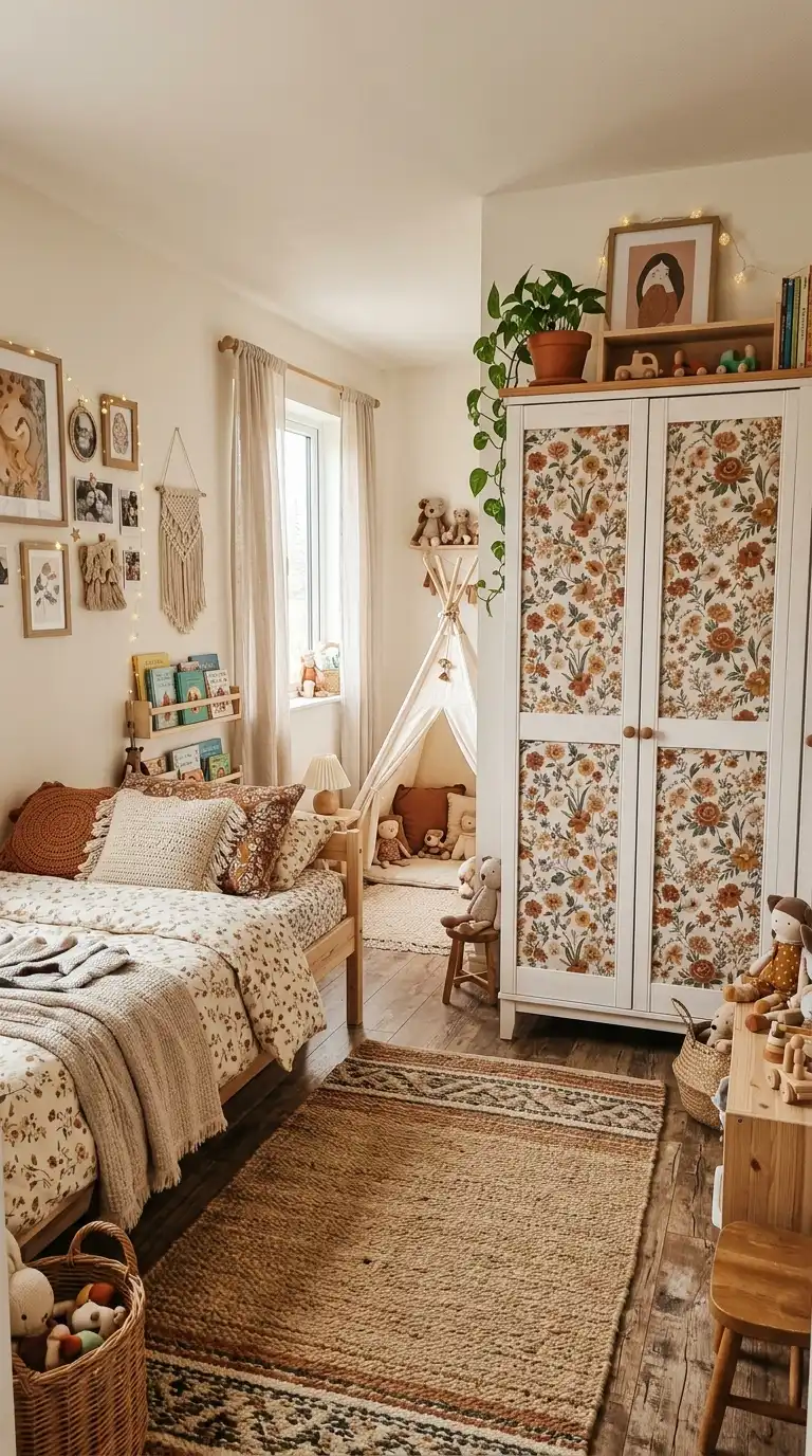 For a soft, textured alternative to wood, incorporate fabric inserts into your shutter doors. Stretch fabric over the solid sections or behind the louvers to add color, pattern, and softness. This design is ideal for children’s rooms, bohemian spaces, or any bedroom where a cozy, layered look is desired.