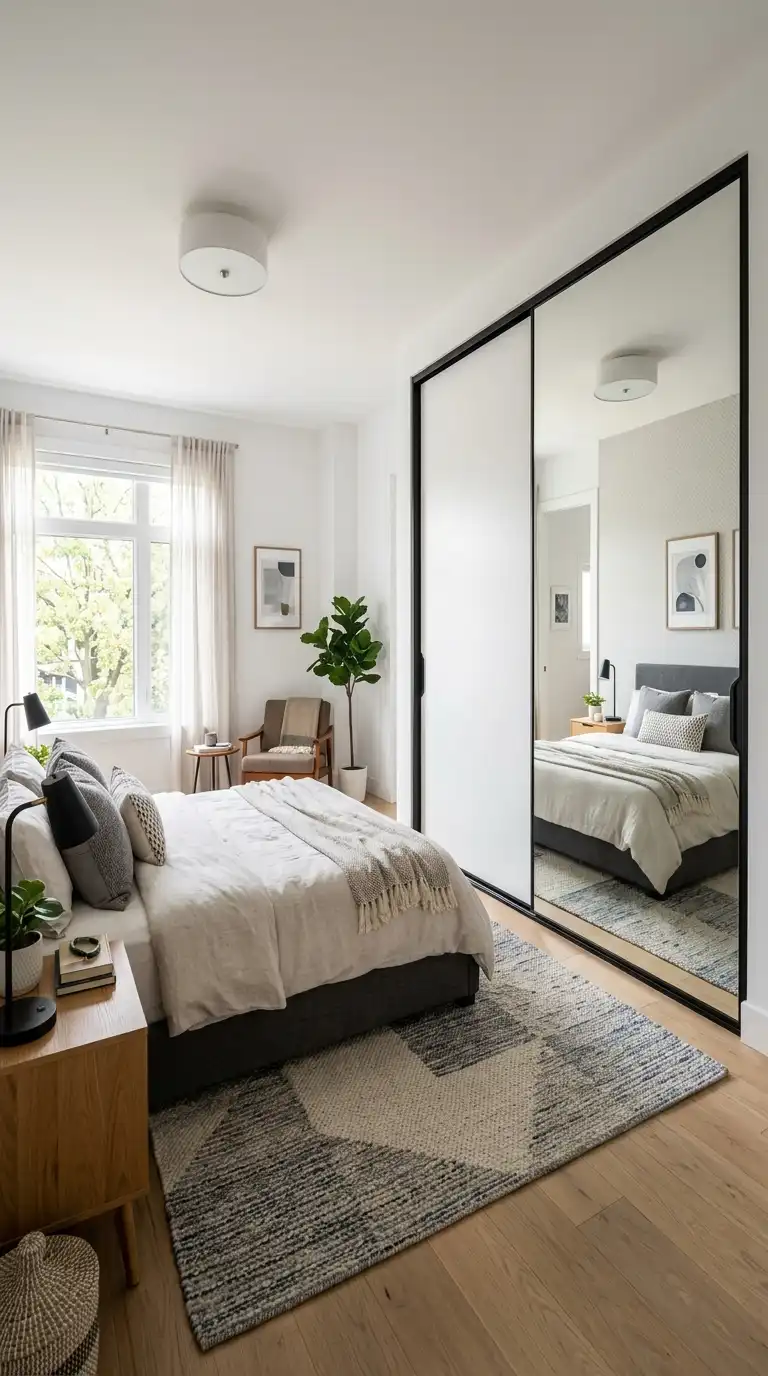 Combine mirrored panels with a contrasting solid finish for a two-tone look. Use mirrors on one door and a bold color or wood finish on the other. This approach adds personality while maintaining the practical benefits of a mirror.