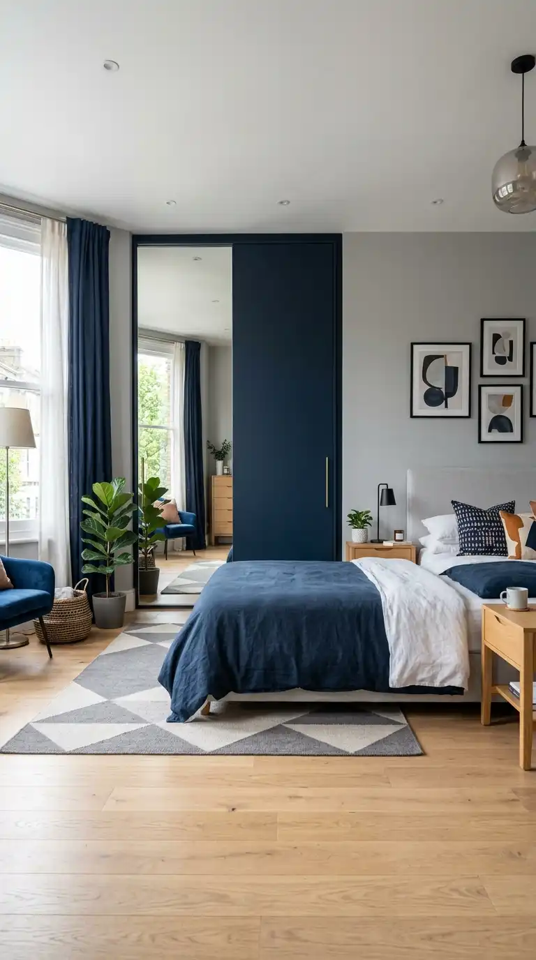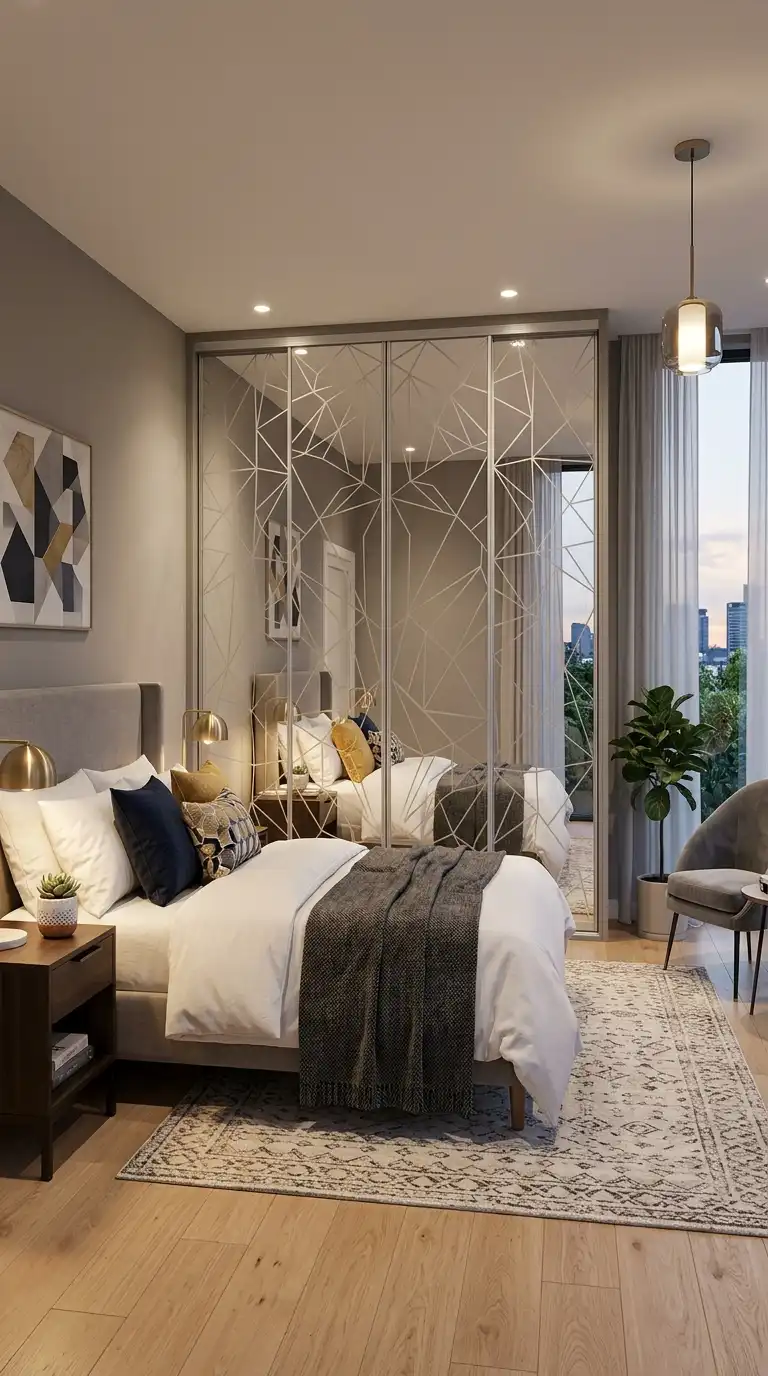 9. Mirrored Wardrobe with Geometric Pattern