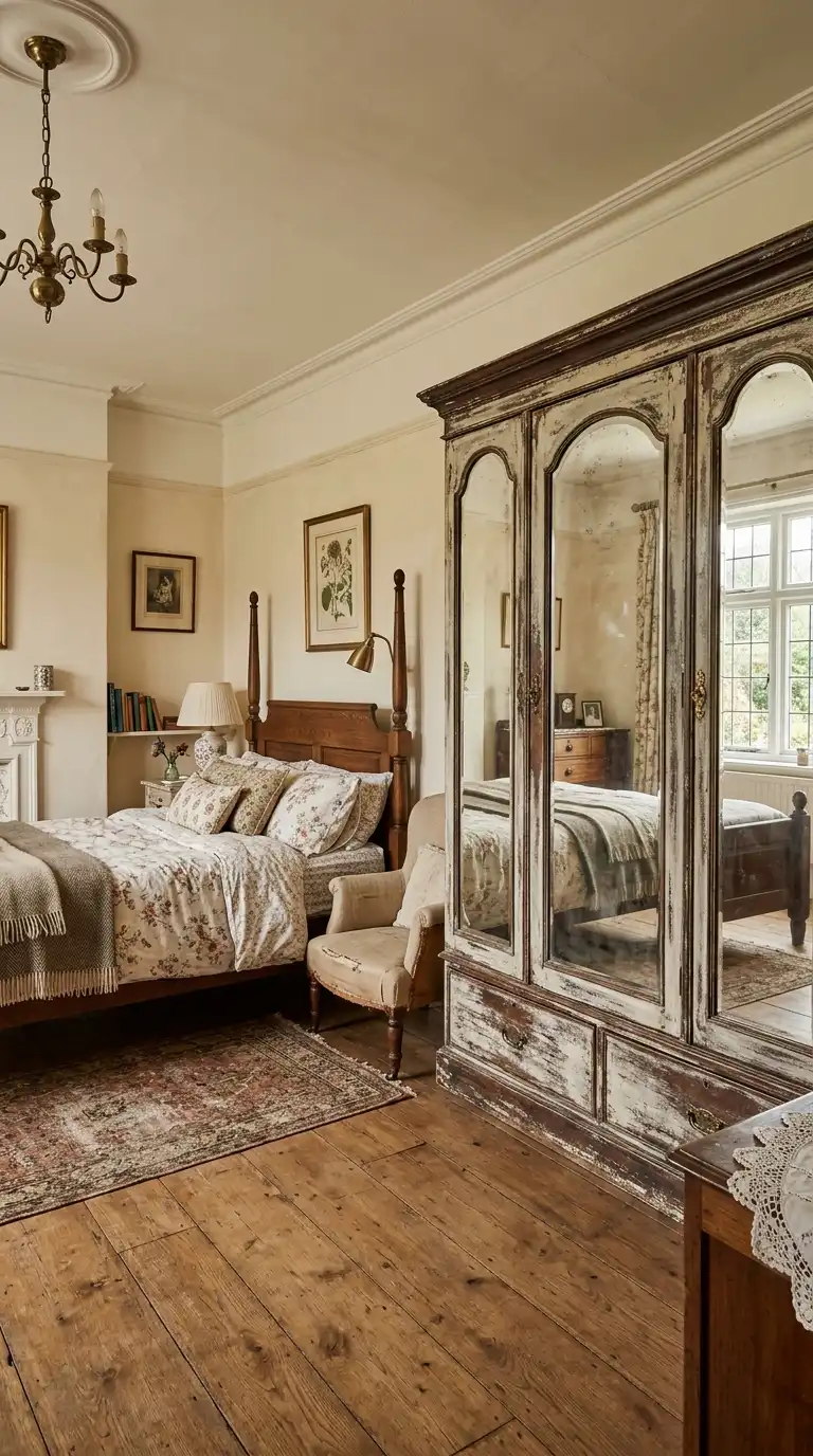8. Mirrored Wardrobe with Antique or Distressed Finish