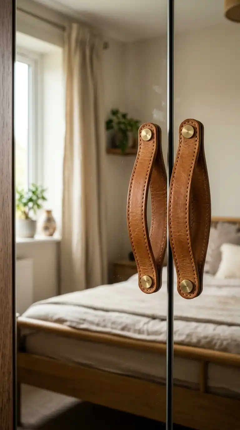 Swap standard handles for leather pulls or metal bars to add a designer touch to your mirrored wardrobe. The hardware becomes an accent, adding texture and contrast against the smooth mirror surface. Choose finishes that complement your bedroom decor.