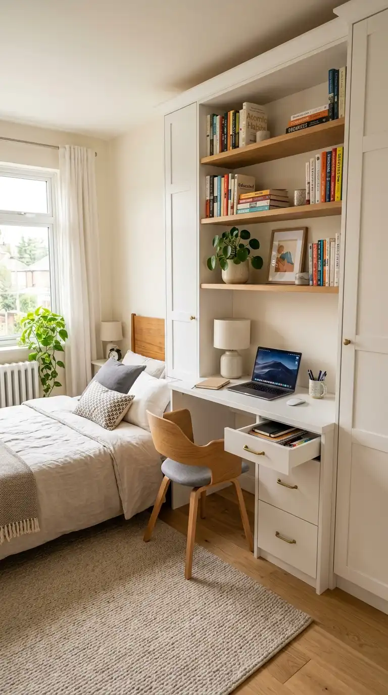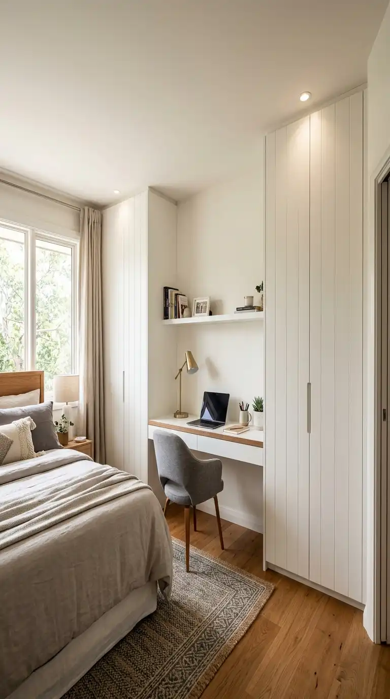 Durable, easy-to-clean materials are ideal. Laminate offers affordability and a wide range of finishes. Solid wood adds warmth and character. Quartz or marble surfaces provide elegance but require more care. - How do I incorporate a desk into a small bedroom?