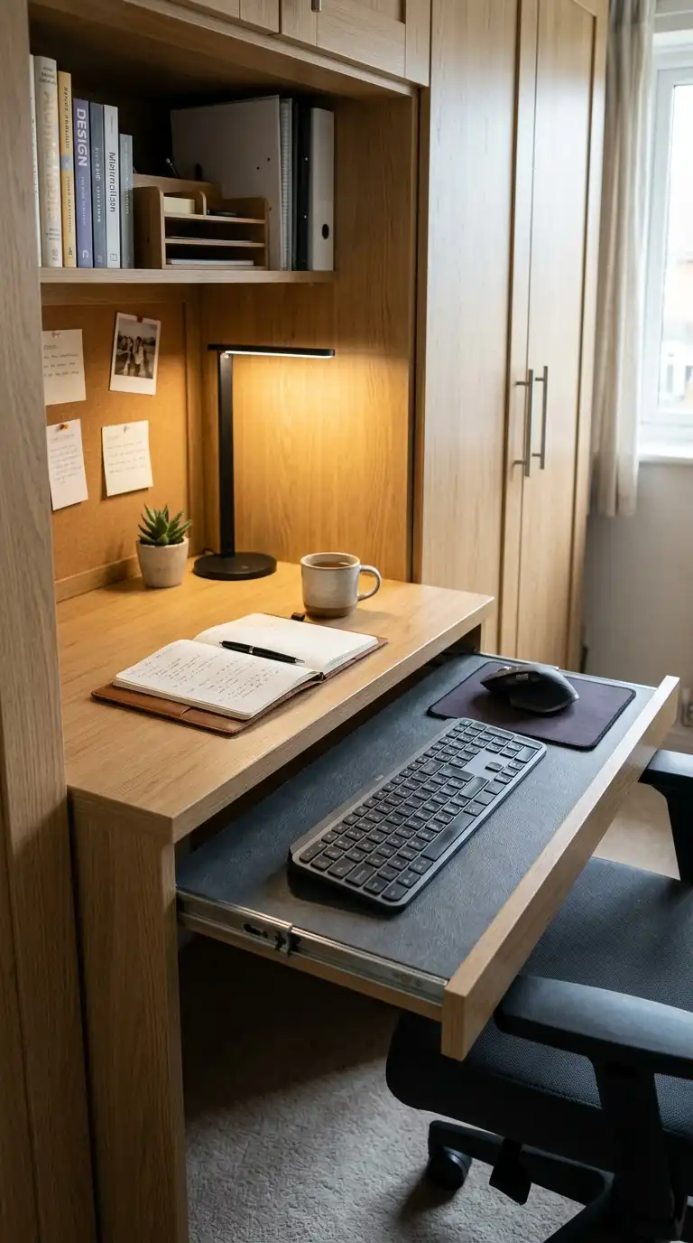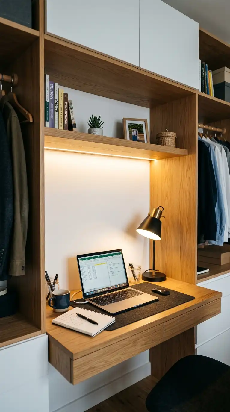 A compact desk requires at least 90–120 centimeters of width and 50–60 centimeters of depth for comfortable use. Allow space for a chair and movement around the desk area. - Can I add a desk to an existing wardrobe?