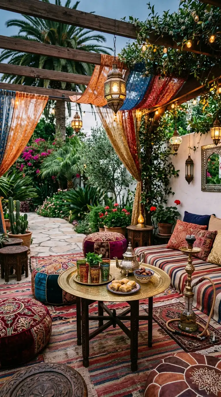 Create an exotic, Moroccan-inspired cafe with low seating, colorful cushions, and a brass tray table. Hang lanterns and sheer fabric from a pergola or tree. Serve mint tea in ornate glasses, along with dates and baklava. Add a hookah or incense burner for ambiance.