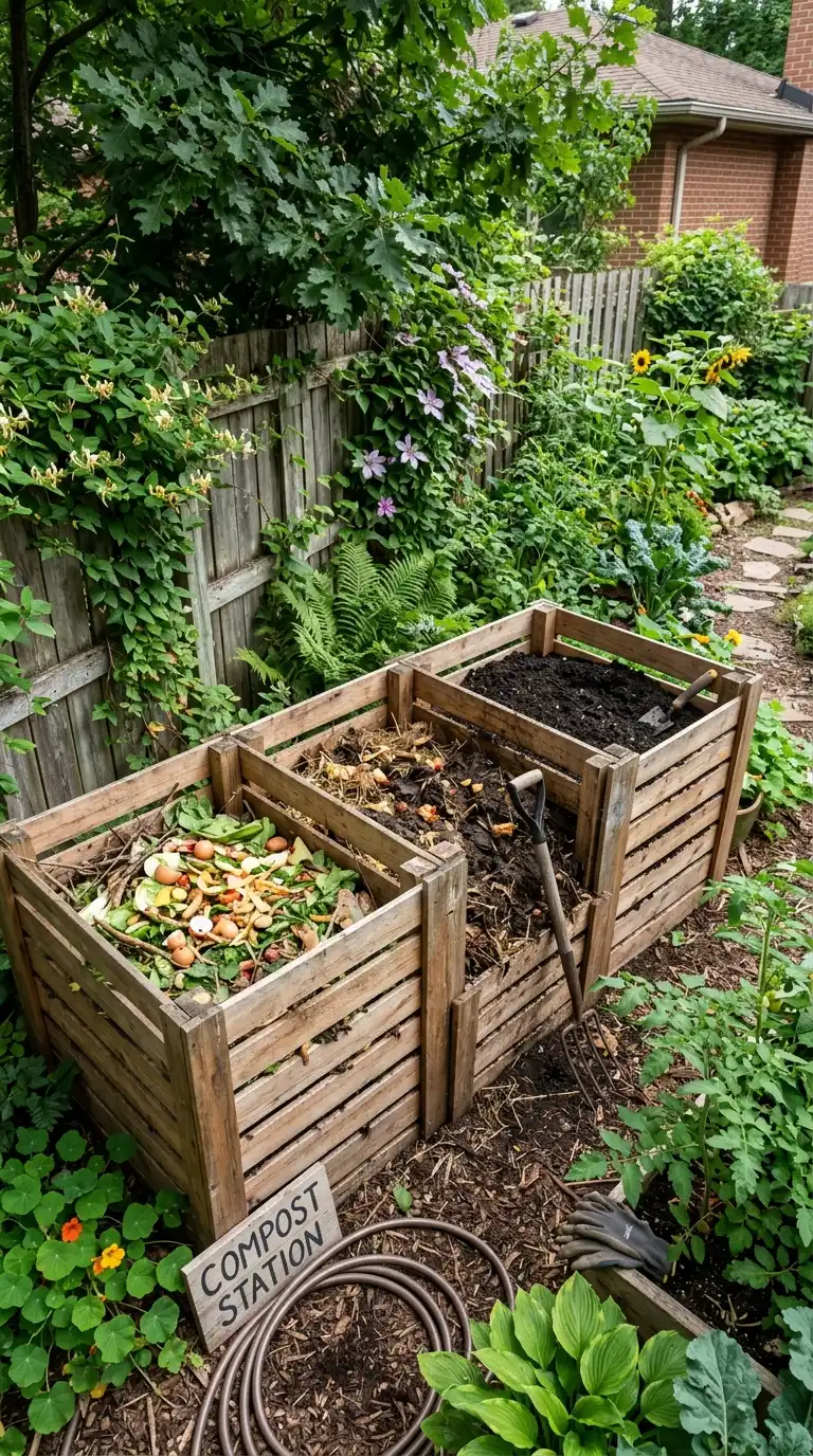 A compost bin turns kitchen scraps and yard waste into rich, organic fertilizer for your garden. Build a simple bin from pallets, wire mesh, or a plastic tumbler. Layer greens (kitchen scraps, grass clippings) and browns (leaves, straw, cardboard). Keep the pile moist and turn it regularly. Finished compost improves soil structure, retains moisture, and feeds your plants.