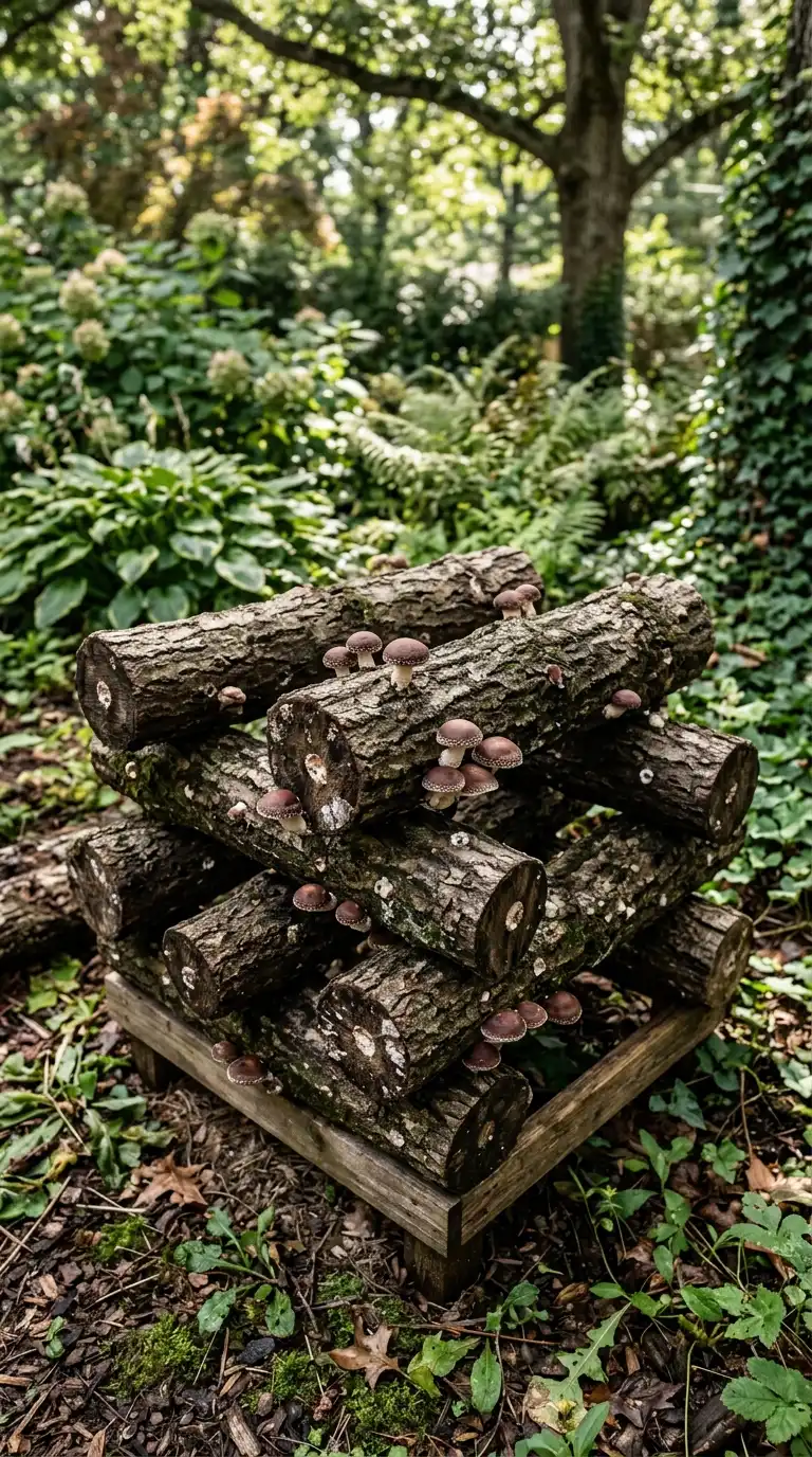 Grow gourmet mushrooms on hardwood logs in a shady corner of your yard. Drill holes in freshly cut oak, maple, or beech logs, and insert mushroom spawn (shiitake, oyster, or lion’s mane). Seal with wax and stack the logs in a damp, shaded area. Mushrooms will fruit seasonally for several years, providing a unique and valuable crop.