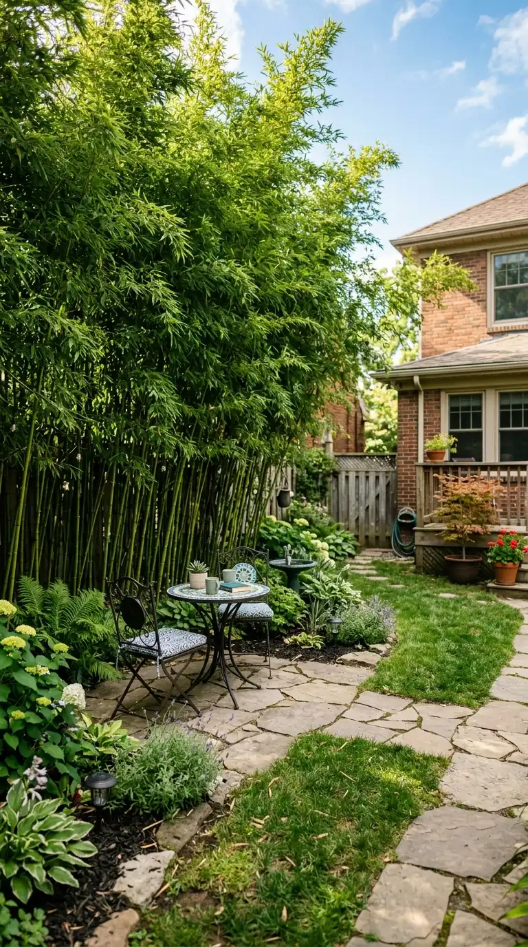 Bamboo is a fast-growing, tall grass that creates an excellent privacy screen. Use clumping (non-invasive) varieties like Fargesia to prevent spreading. Plant bamboo in containers or within root barriers to control its growth. Bamboo screens have a tropical, exotic look and can reach heights of 10-20 feet. For an instant screen, install rolled bamboo fencing on an existing fence or trellis.