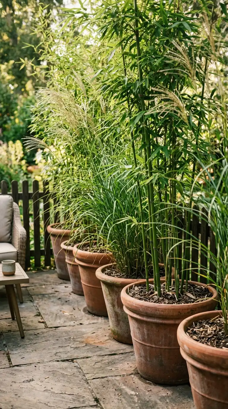 Create a movable privacy screen using large containers planted with tall grasses, bamboo, or shrubs. Place the containers along a patio edge or near a seating area. Containers allow you to adjust the screen as needed and are ideal for renters or for areas where you cannot plant in the ground. Choose pots that complement your decor.
