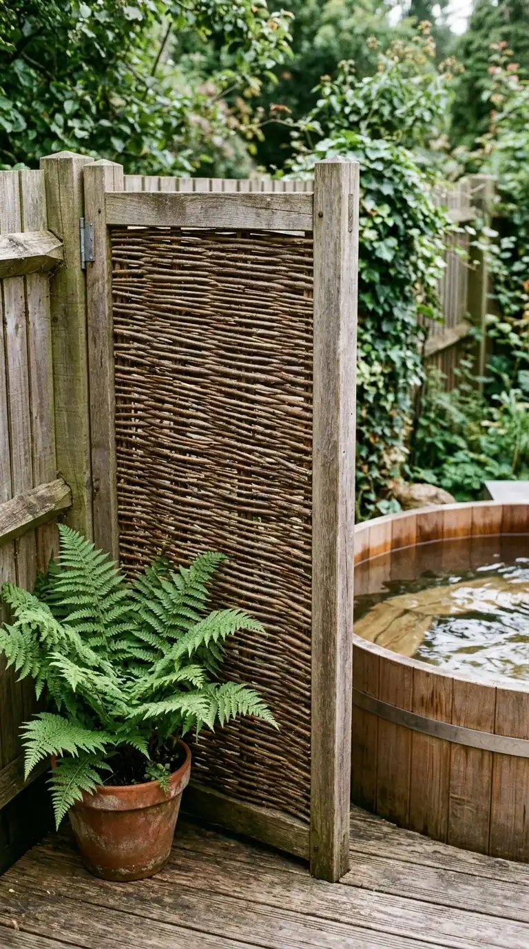 Willow or birch screening consists of woven branches attached to a fence or frame. It provides an attractive, natural-looking privacy solution that is more affordable than a solid fence. Willow screens have a rustic, organic appearance and can be installed temporarily. They are ideal for creating privacy around hot tubs, seating areas, or garden nooks.