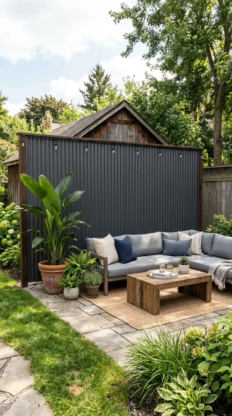 For an industrial, modern look, use corrugated metal panels as a privacy screen. Attach the panels to a wooden frame, and place the screen near a seating area or to block an unsightly view. Metal screens are durable, low-maintenance, and can be painted any color. Combine with climbing vines for a softer look.