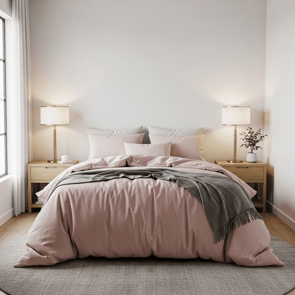 Bedroom ideas for small rooms women frequently lean into soft blush pinks paired with gold or brass accents. This palette is light-reflective and airy, providing a warm, feminine glow that prevents the room from feeling dark or enclosed.