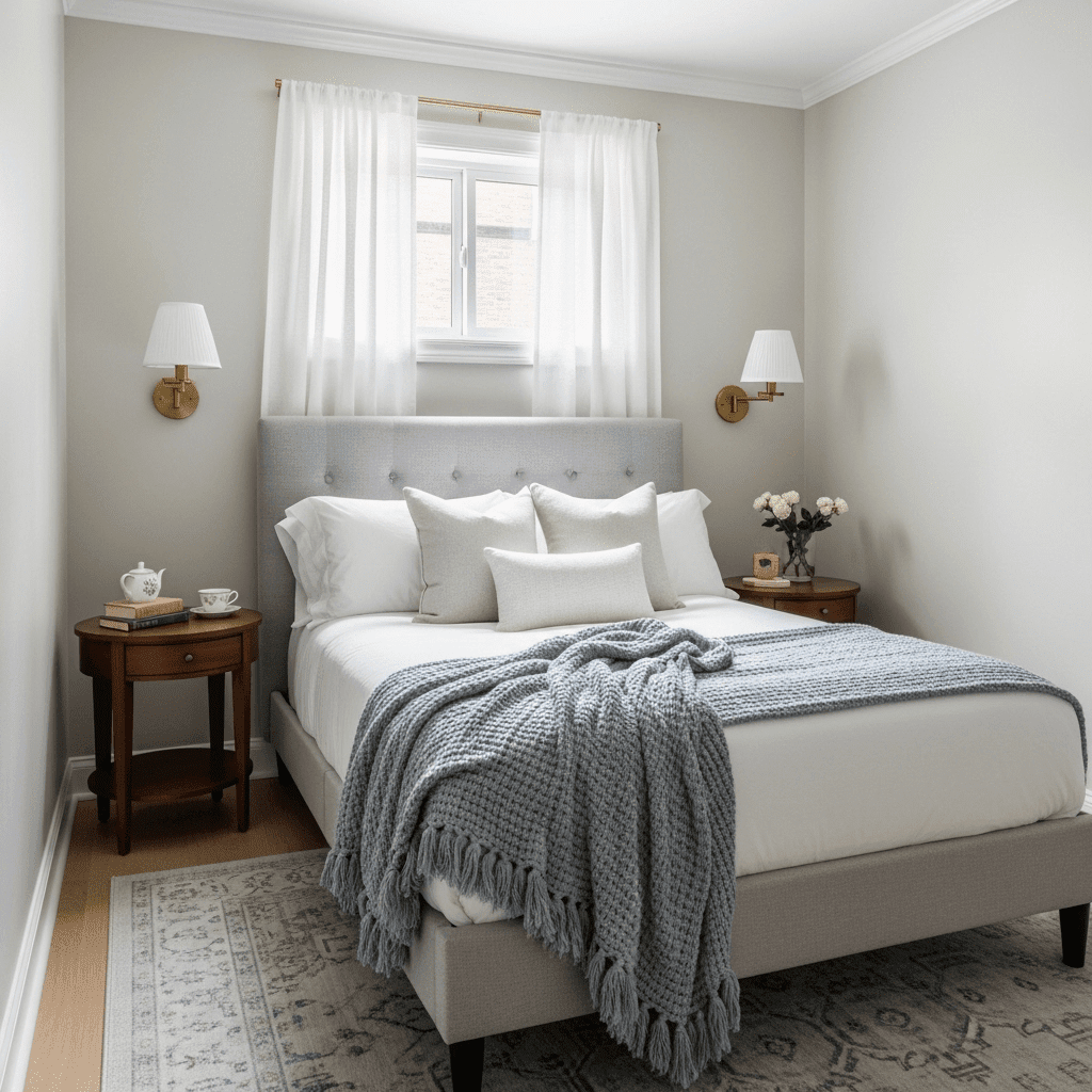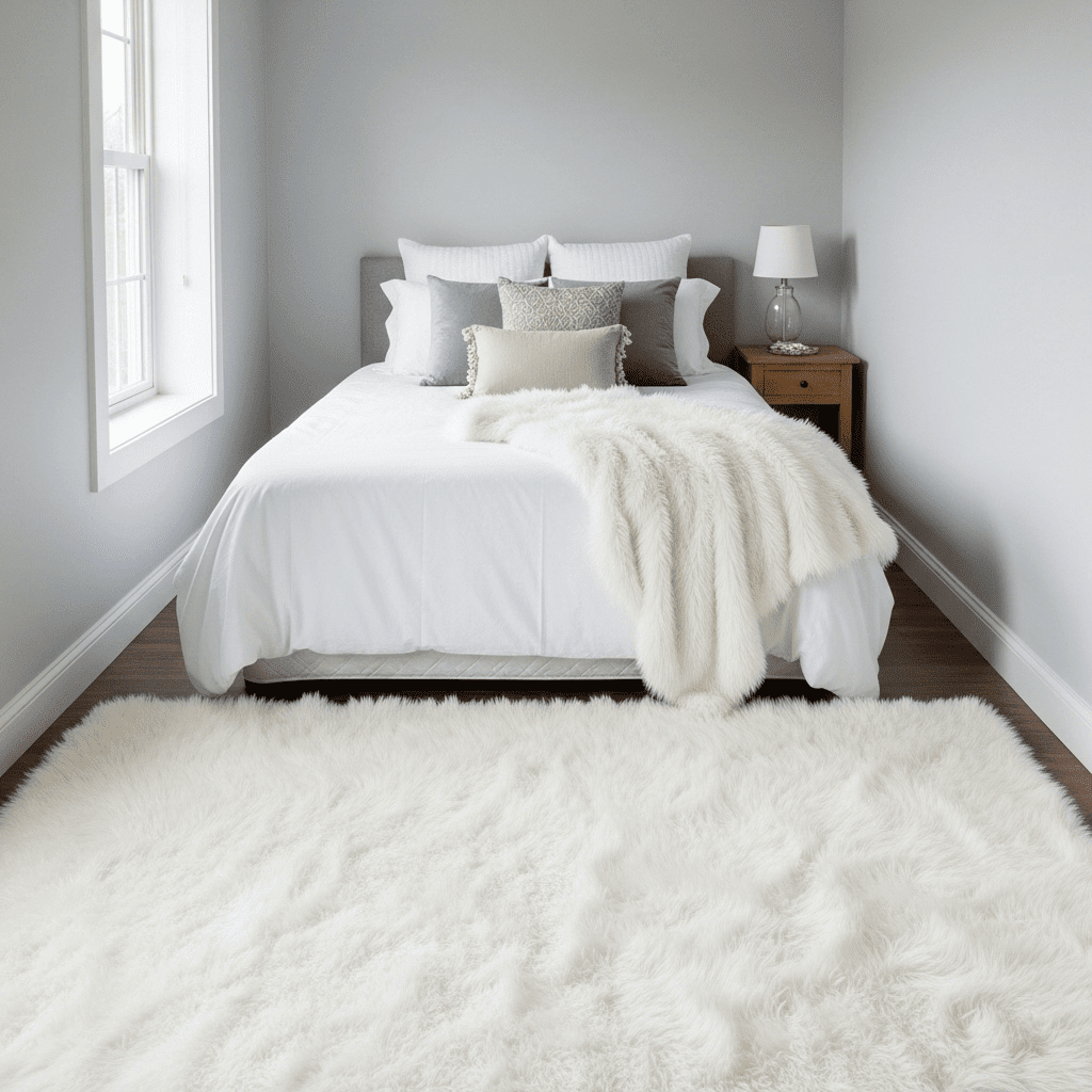 Bedroom ideas for small rooms women introduce luxury through touch by layering faux fur rugs or pillows. The high-pile texture adds a sense of opulence that makes a small space feel like a high-end hotel suite.
