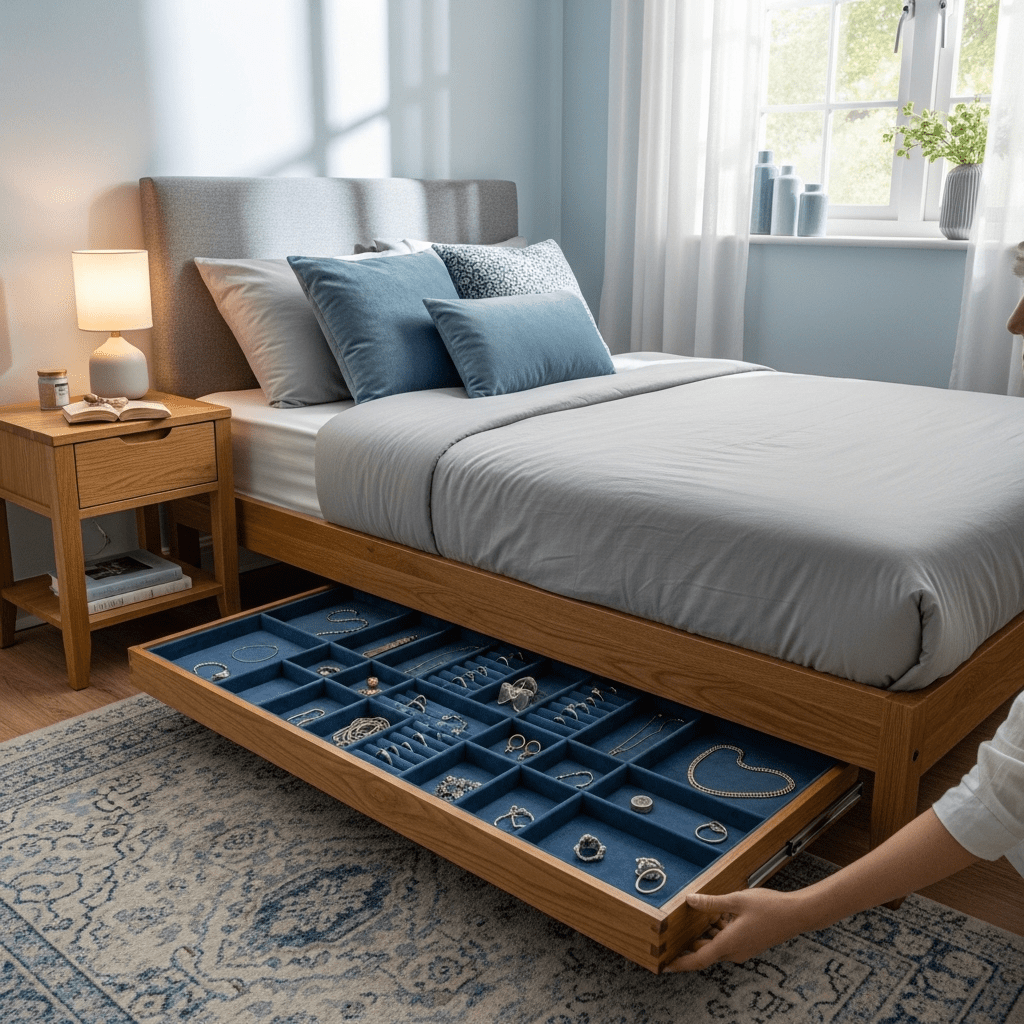 9. Hidden Under-Bed Jewelry Storage