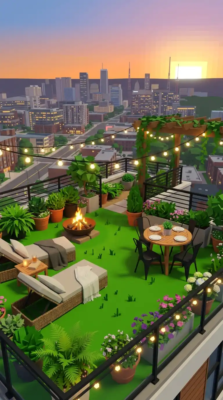 If your Bloxburg home has a flat roof, transform it into a stylish rooftop garden or patio. Use potted plants, outdoor furniture, and string lights to create an urban oasis. Add a small fire pit, a dining set, and lounge chairs. Use artificial turf or decking for the flooring.