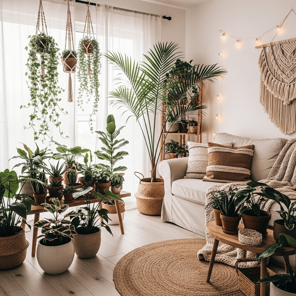 Using plants as the main decor. Cluster plants of varying heights—from trailing pothos on shelves to massive Monstera on the floor—to create a living, breathing sanctuary.