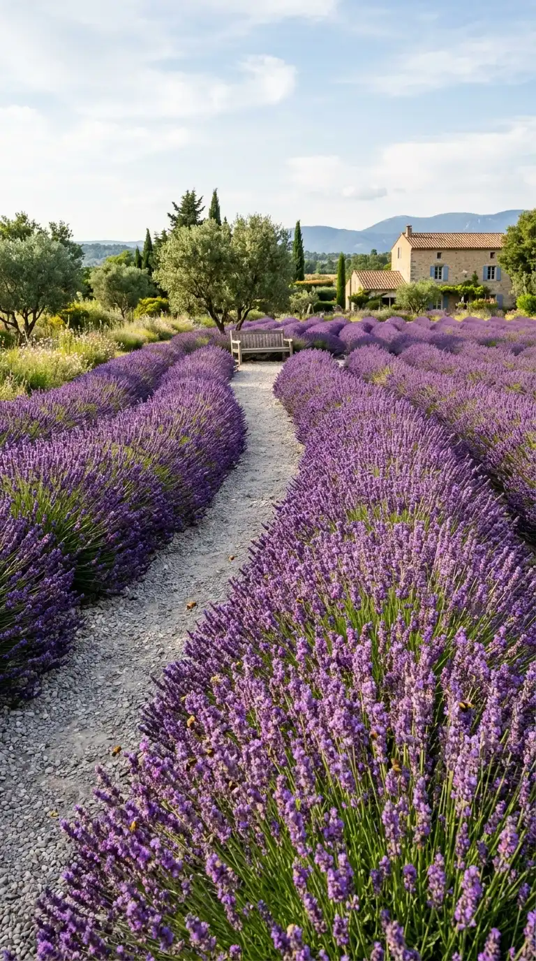 Create a small lavender field inspired by the Provence region of France. Plant rows or drifts of lavender—choose English lavender for fragrance and French lavender for visual impact. Add a gravel pathway through the field, and place a simple wooden bench where you can sit and enjoy the scent. The purple blooms and aromatic foliage create a sensory experience.