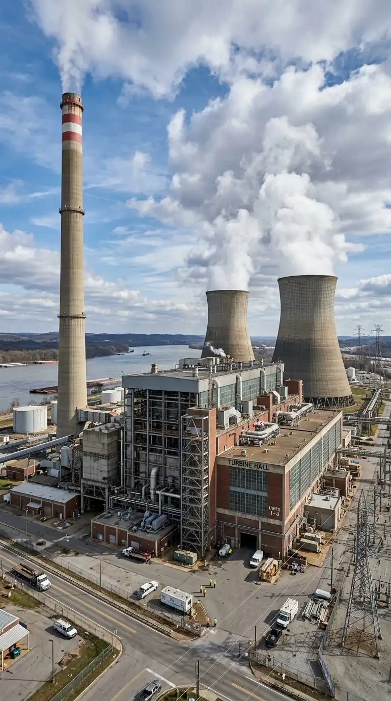 The power plant is a building that generates electricity. The most visible features are the smokestack, the cooling towers, and the turbine hall. The power plant is monumental, industrial, and powerful.