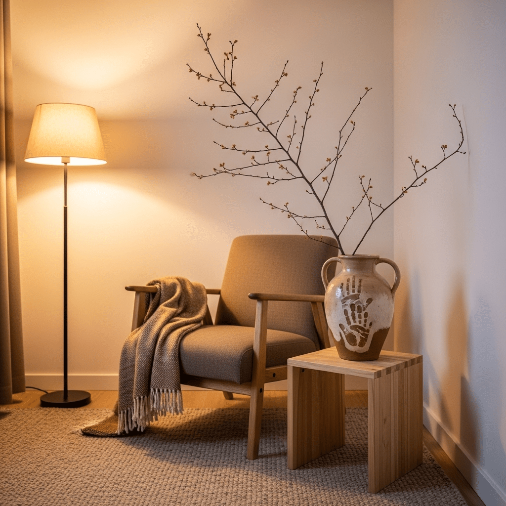 Purposely leave one corner or wall empty. In Japandi design, “Ma” (negative space) is as important as the furniture itself, giving the small room room to “breathe.”