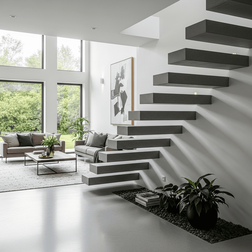 For a brutalist or ultra-modern look, using raw concrete slabs that appear to hover in mid-air. It’s a bold choice that adds heavy texture to the space.