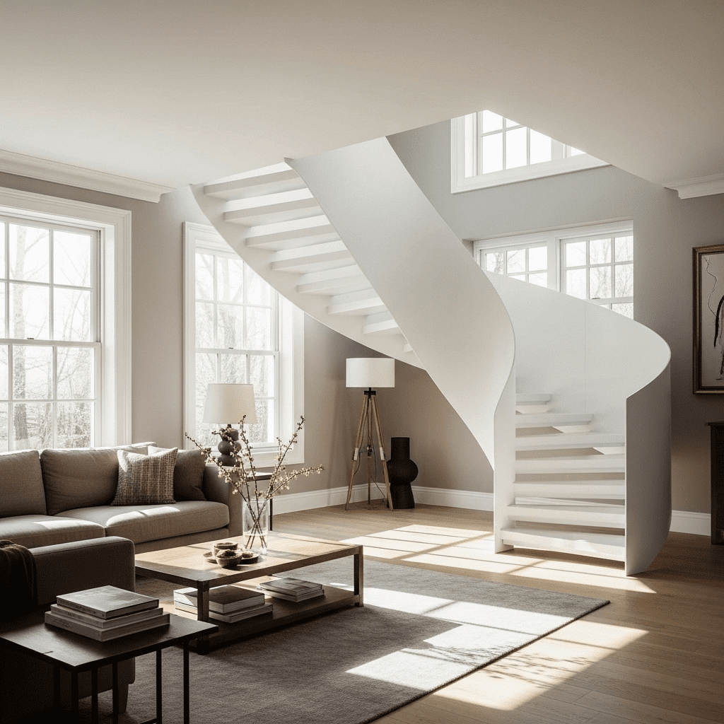 A space-saving classic that adds a rugged, masculine edge. A black steel spiral staircase works perfectly in urban lofts or smaller contemporary apartments.