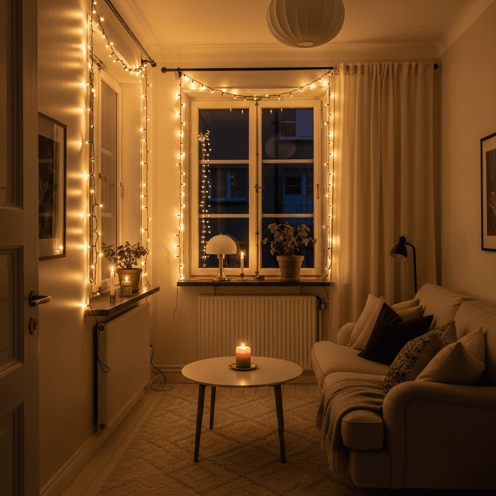 Light It Up: Focus on lights and candles that add ambiance without physical clutter. Fairy lights work wonders.