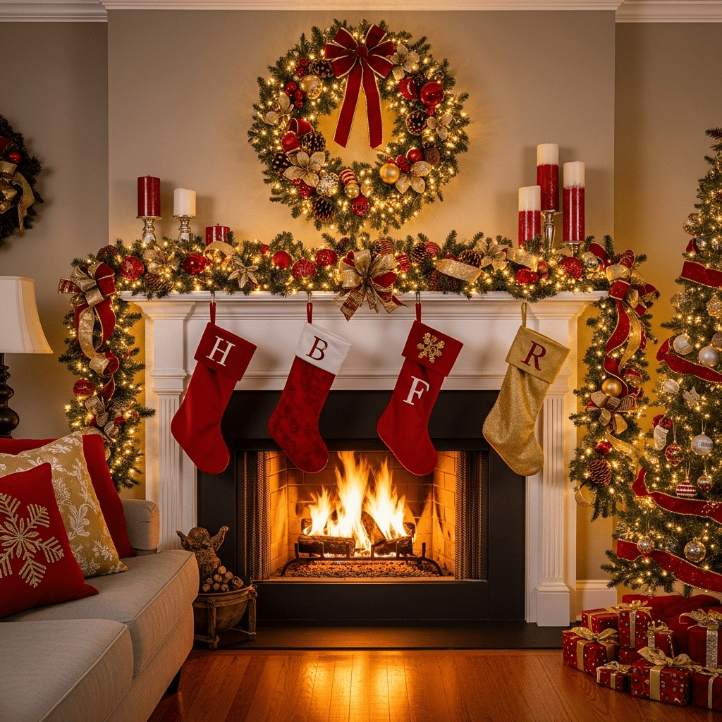 Concentrate Christmas decorations on your fireplace mantel as the main focal point.