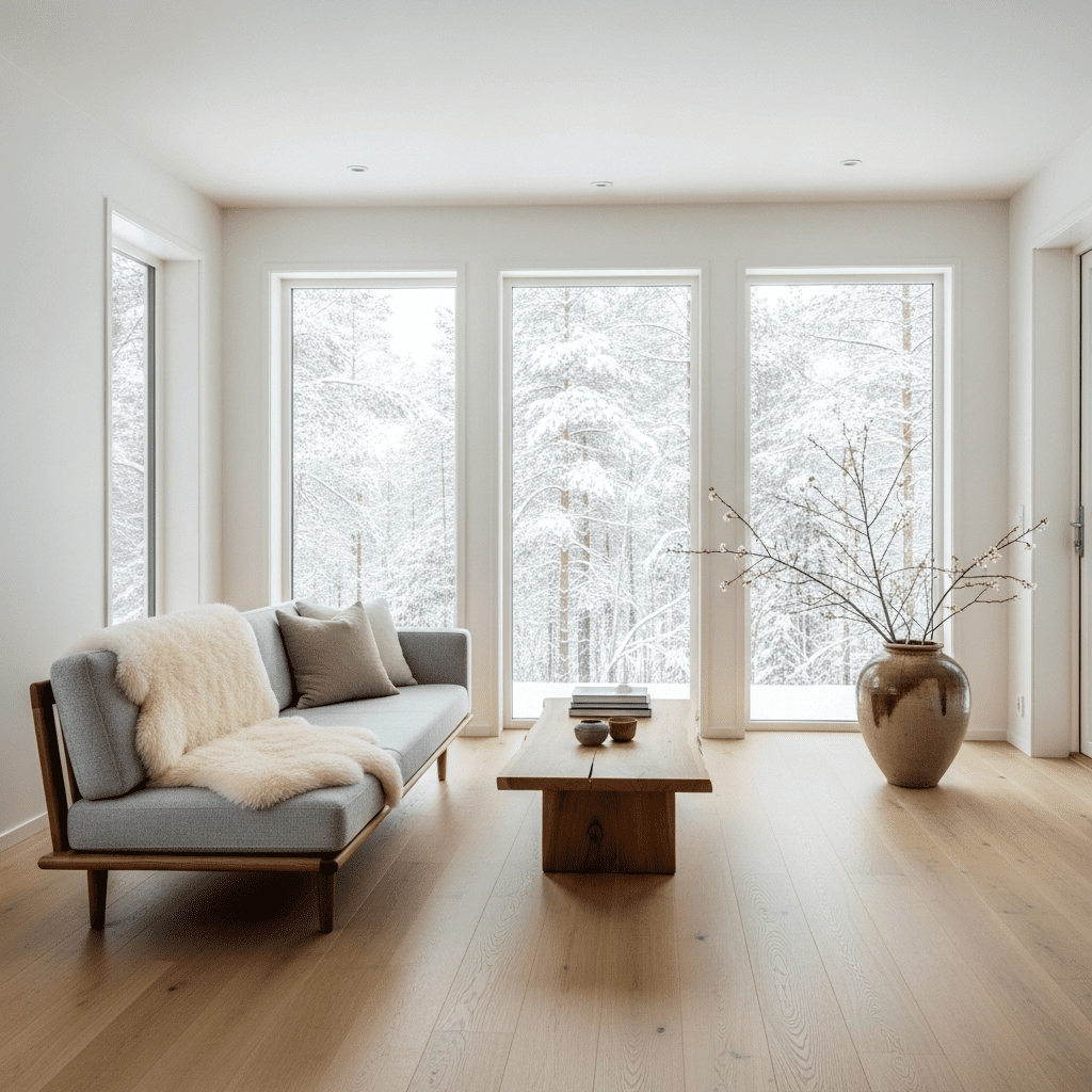 Prove that minimalism can be luxurious with high-end natural materials, impeccable craftsmanship, and designer Scandinavian furniture. Light woods, sheepskin, and curated artwork create serene elegance.