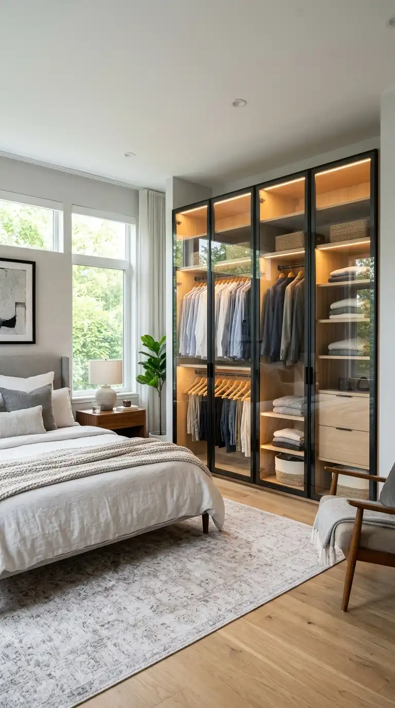 4. Glass-Front Wardrobe with Metal Frames