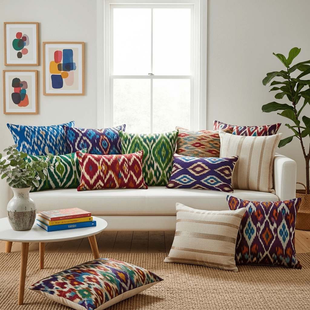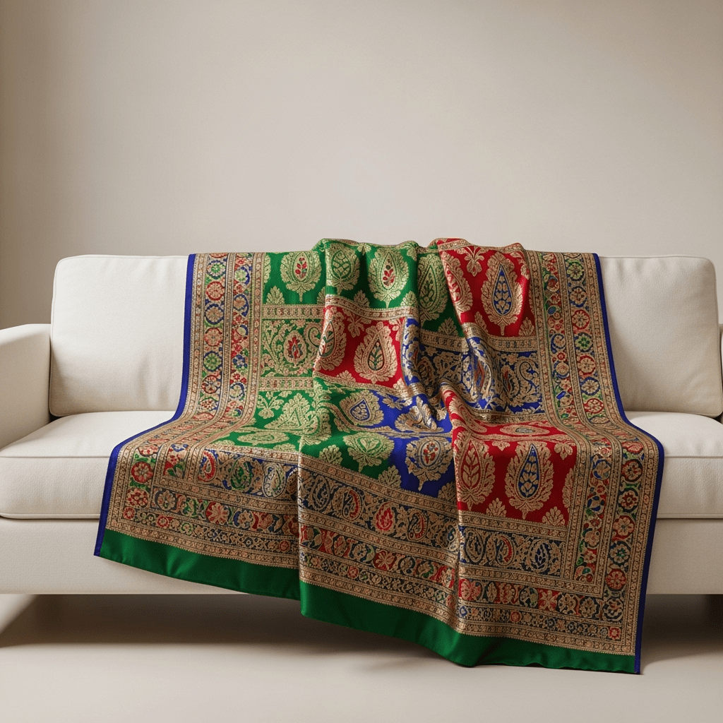 Draping a single, high-quality silk sari or shawl over a neutral sofa to add instant luxury and color to a simple room.