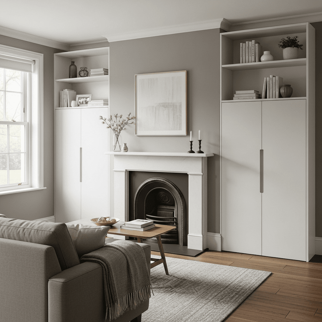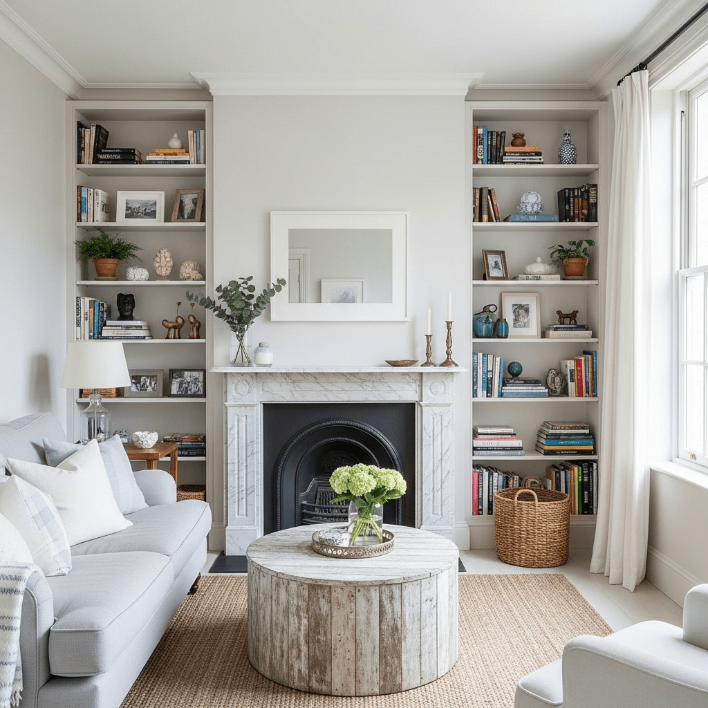 Flank the fireplace with identical built-in bookshelves. This creates a clean, vertical line that draws the eye upward, making the ceiling feel higher while providing essential storage.