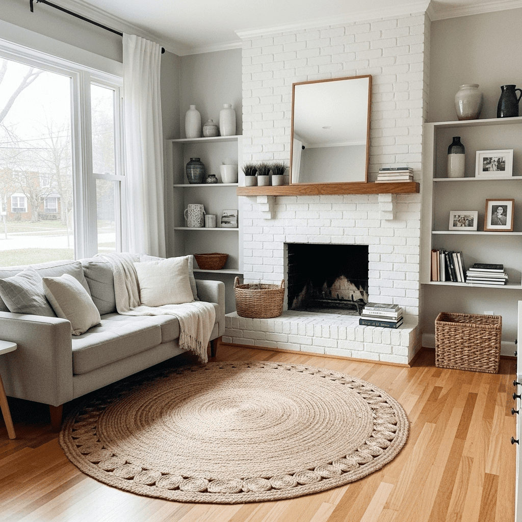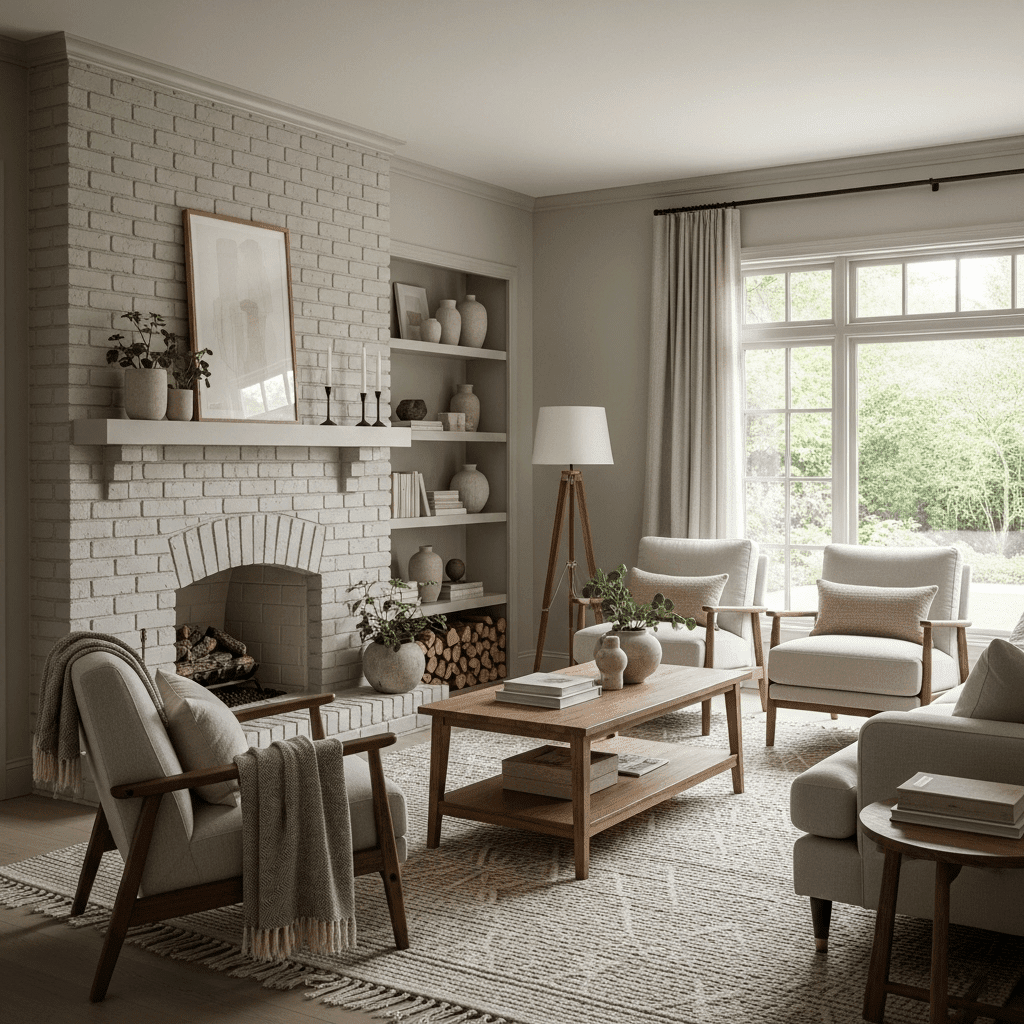 Transform a heavy, dark brick fireplace with a coat of crisp white or soft cream paint. This immediately brightens the room and makes the hearth feel like a fresh, modern element.