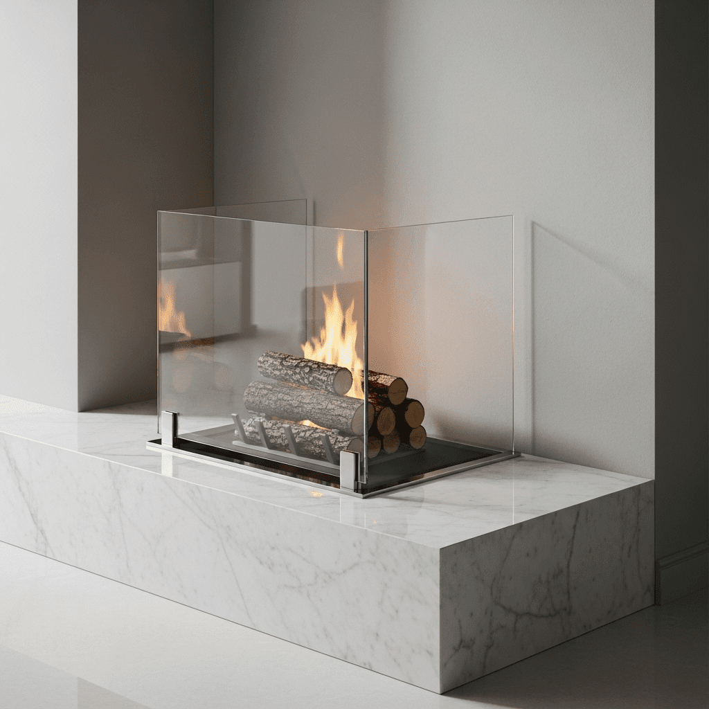 Swap a heavy iron screen for a clear glass one. This allows the beauty of the fire or the hearth to be seen clearly without adding a dark “visual block” to the center of the room.