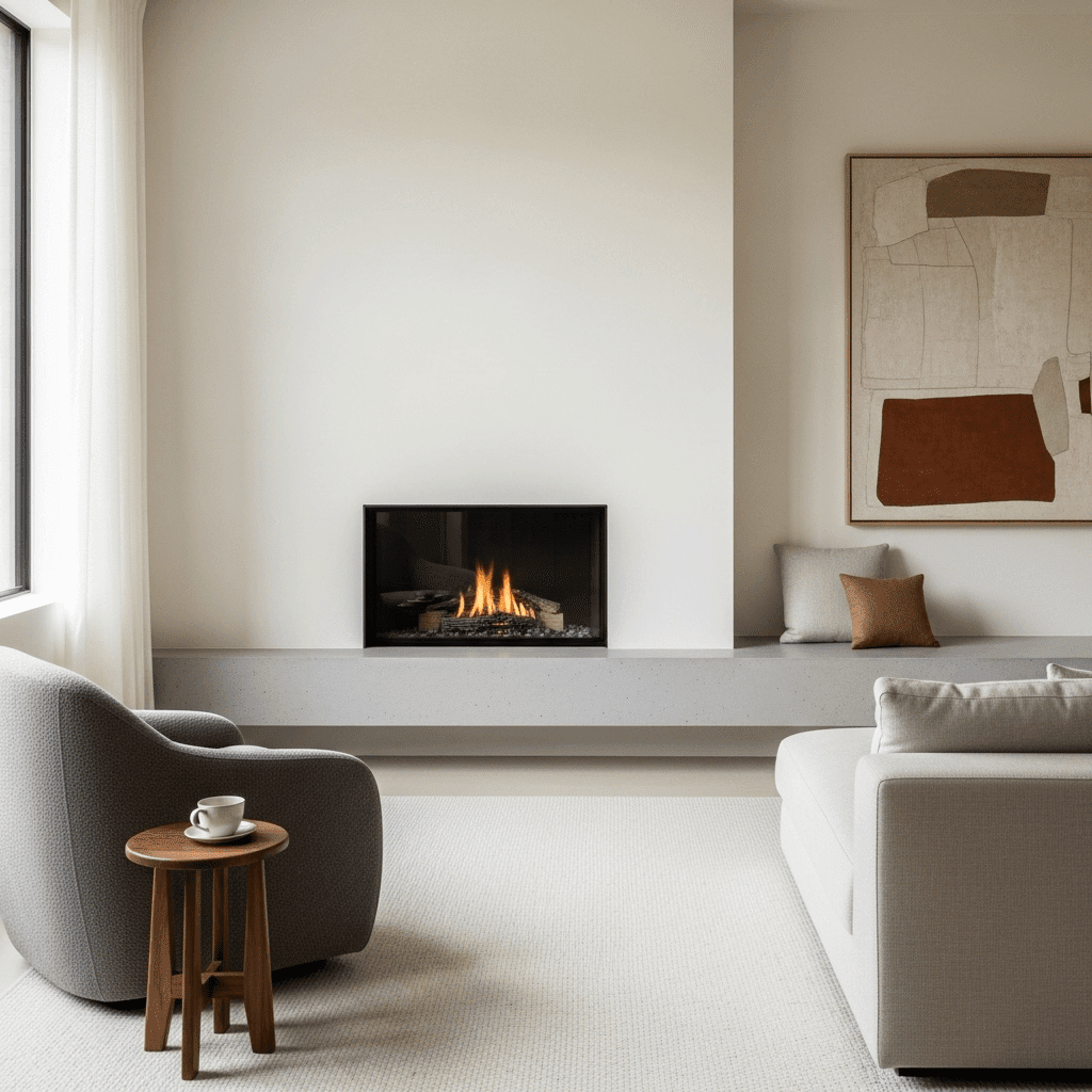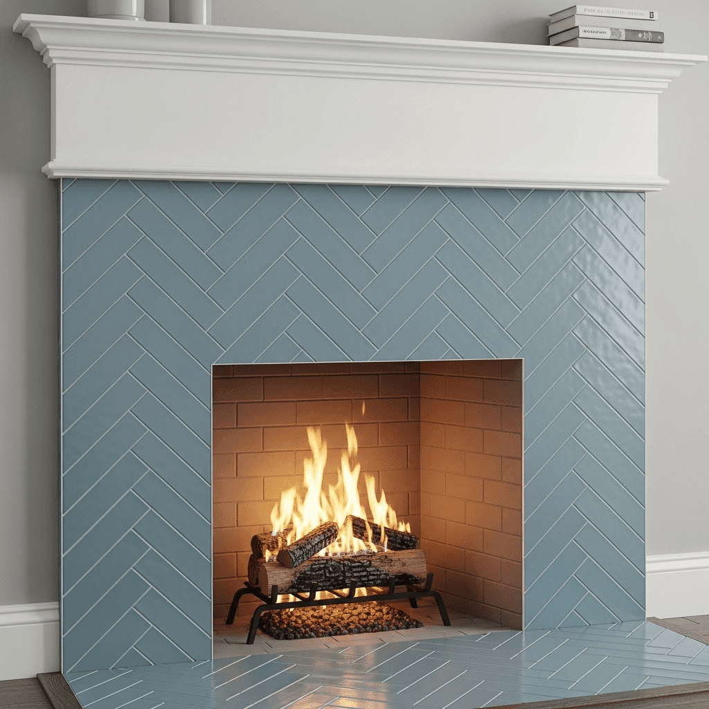 Use small, light-colored subway tiles or geometric patterns for the fireplace surround. Light-reflective tiles bounce light around the room, making the hearth area feel more expansive.
