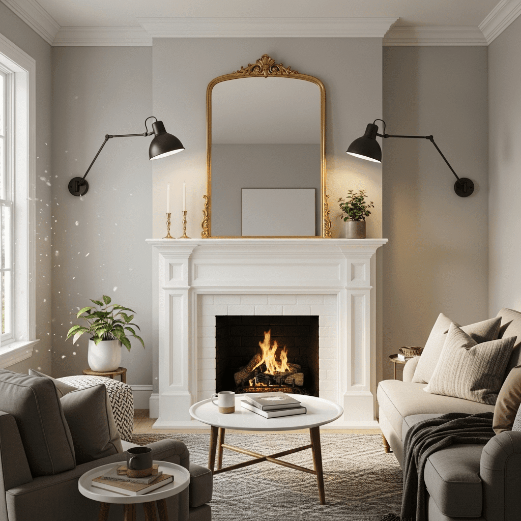 Install two adjustable wall sconces on either side of the fireplace. This eliminates the need for floor lamps near the hearth, keeping the walkways clear and highlighting the architecture.