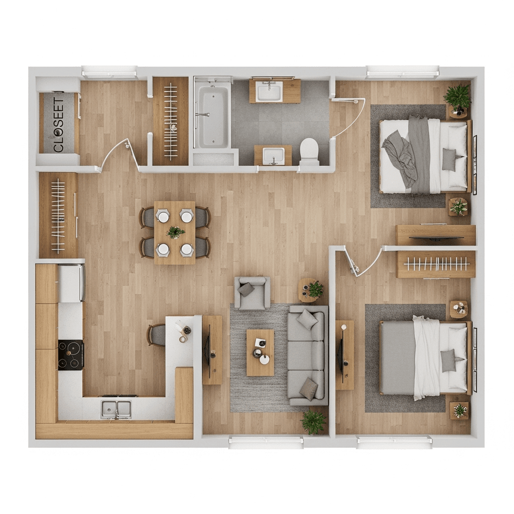 Using the same flooring material across the entire open space prevents the “choppy” look of different zones. This seamless transition tricks the eye into seeing one large, expansive room.