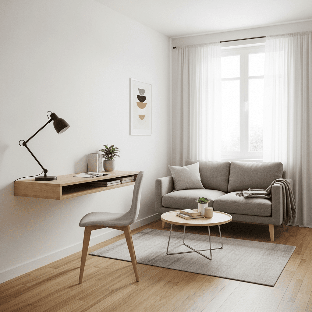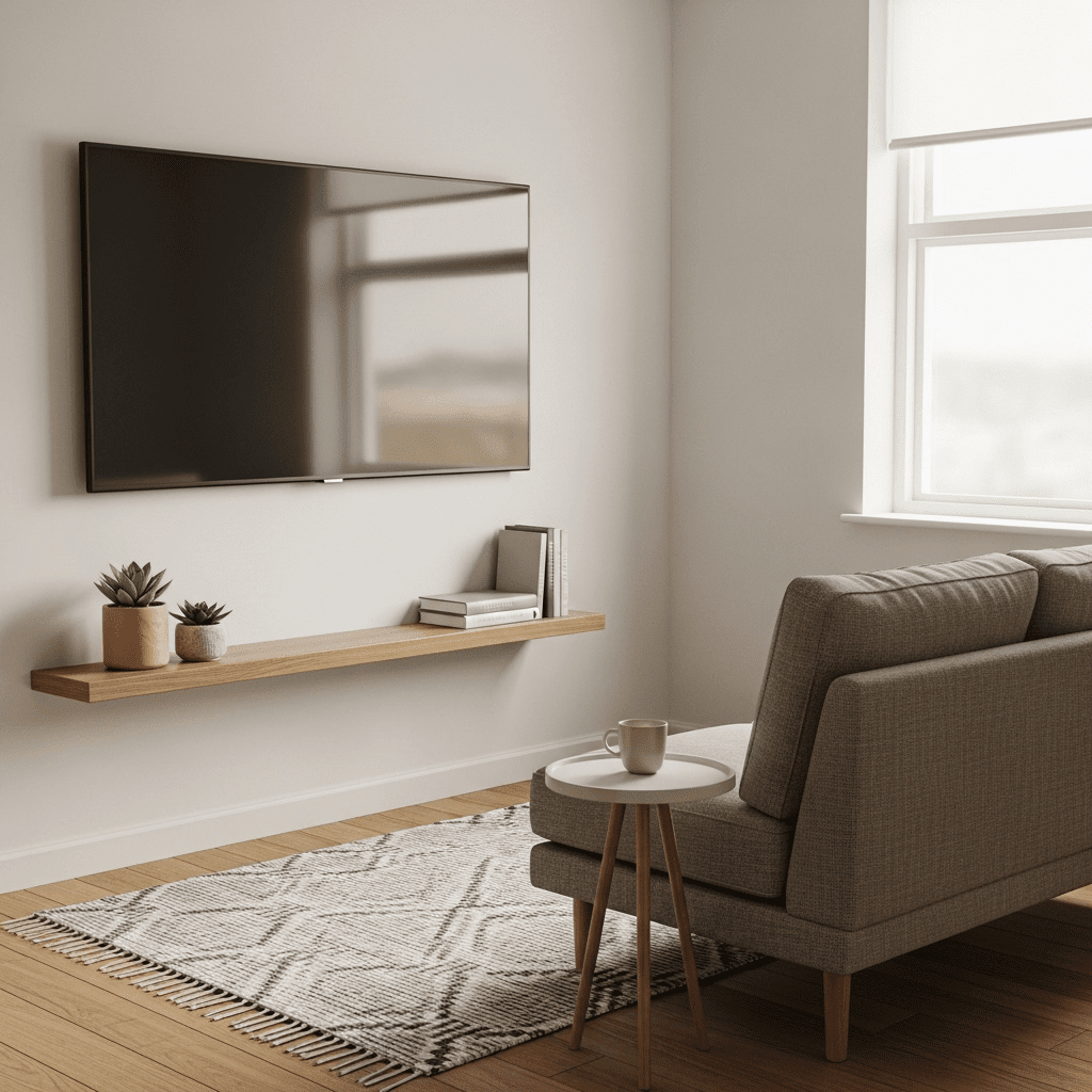 If you need a home office, install a floating “laptop bar” along one wall. It provides a functional workspace that doesn’t interfere with the living room’s social flow.